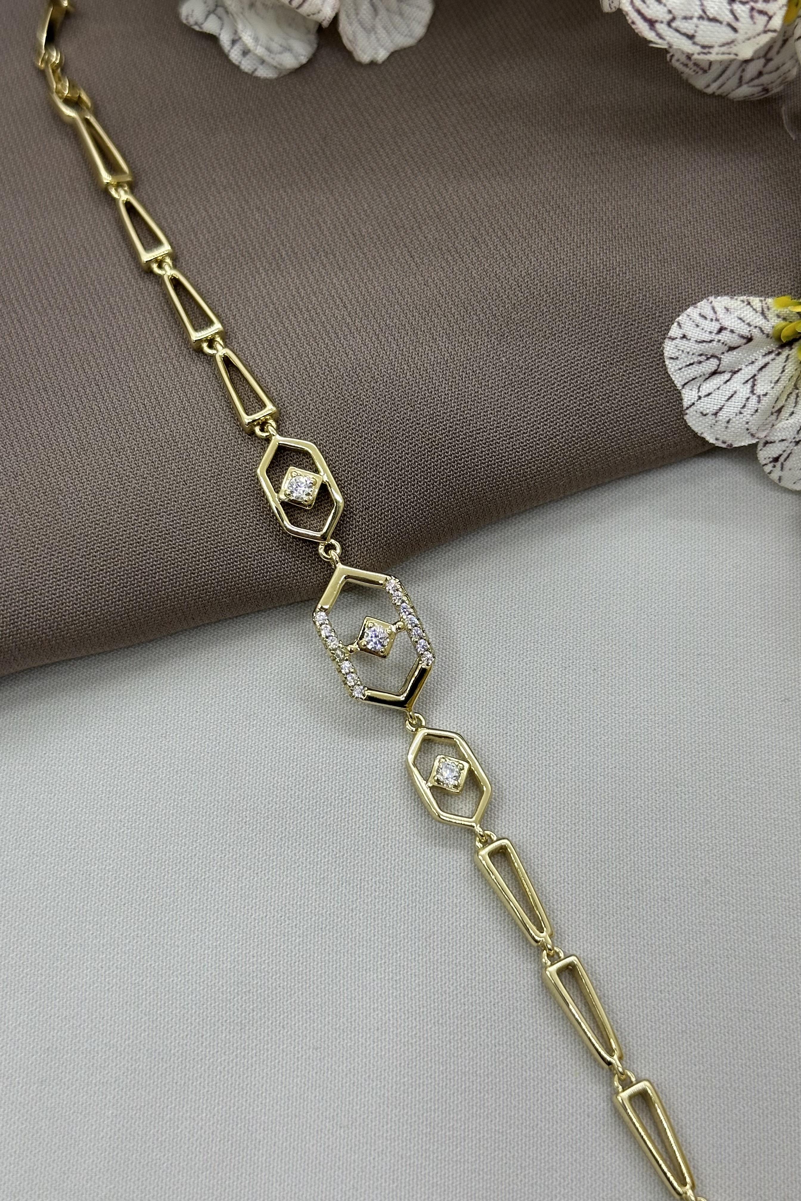 14K Element Taşlı Gold Vıp Bileklik