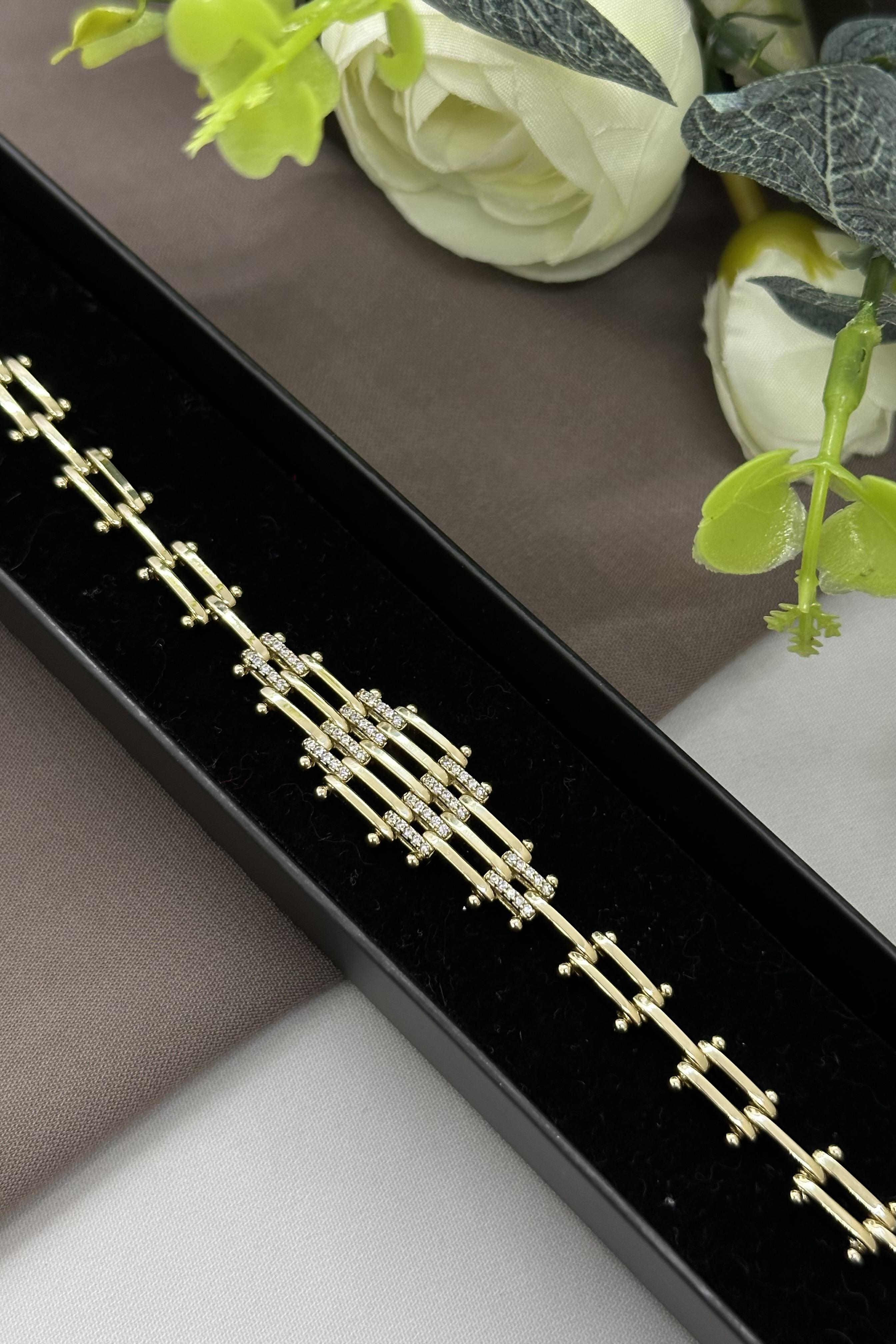 14K Piramit Model Gold Vıp Bileklik