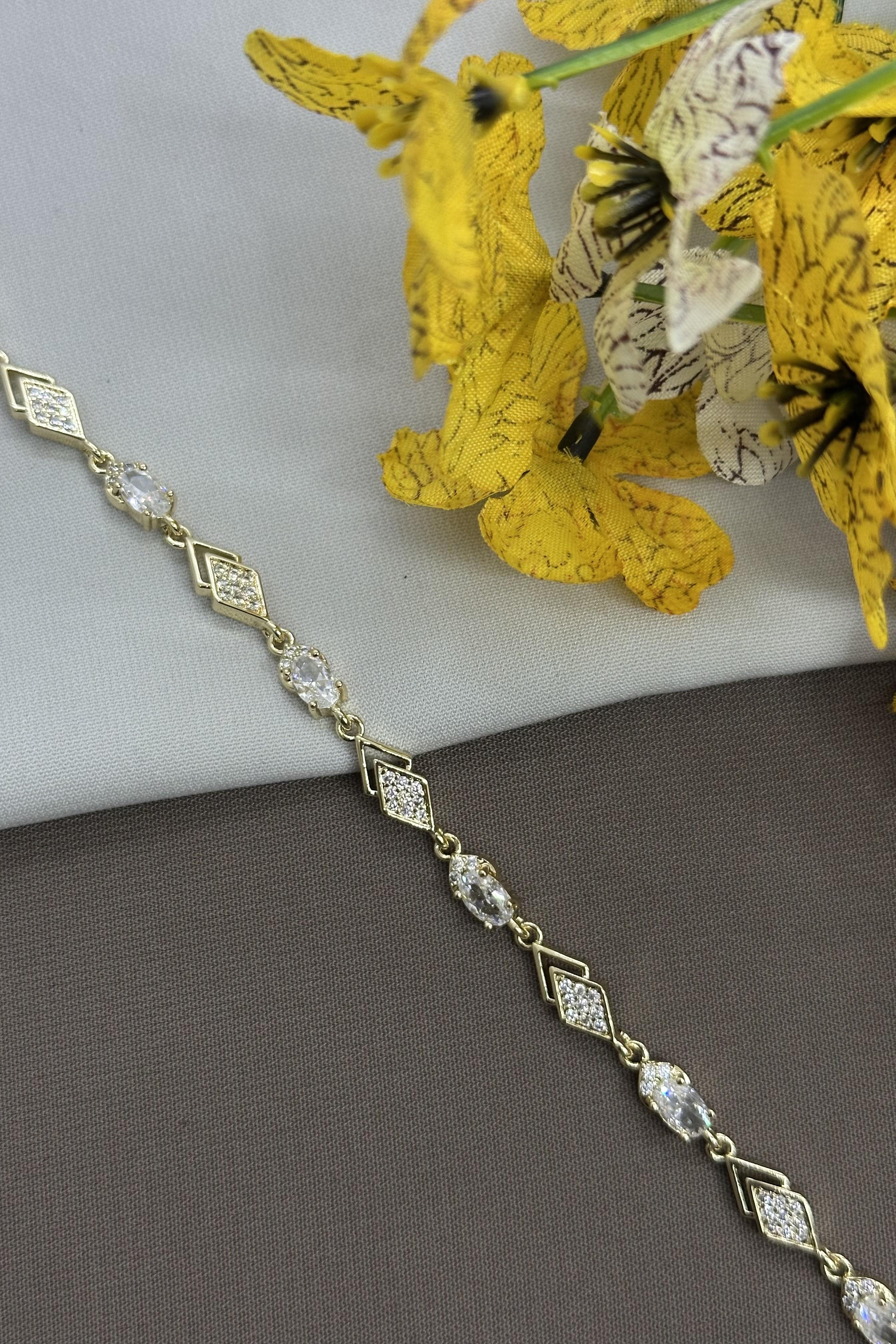 14K Piramit Taşlı Gold Vıp Bileklik
