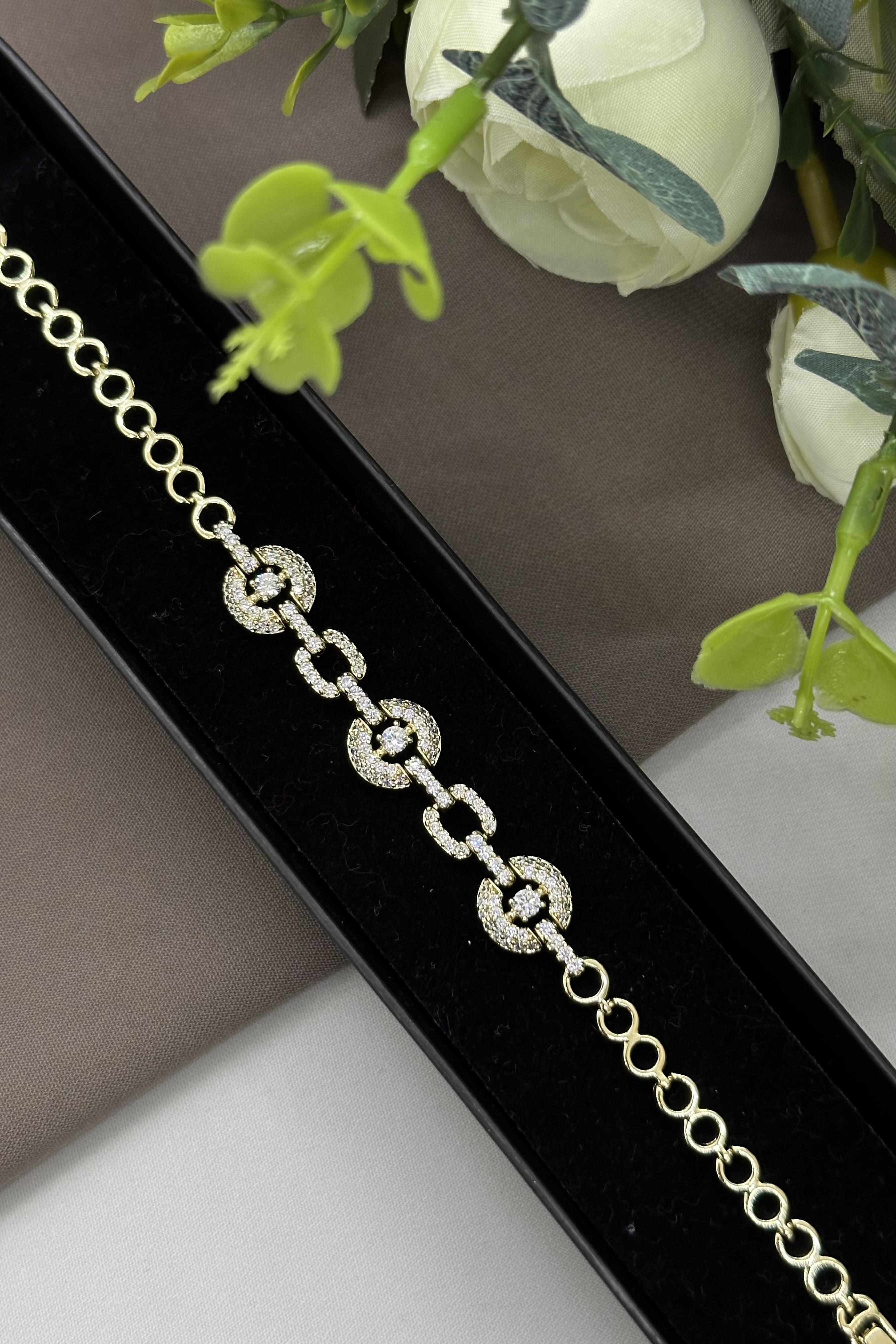 14K Taşlı Gold Halka Model Vıp Bileklik
