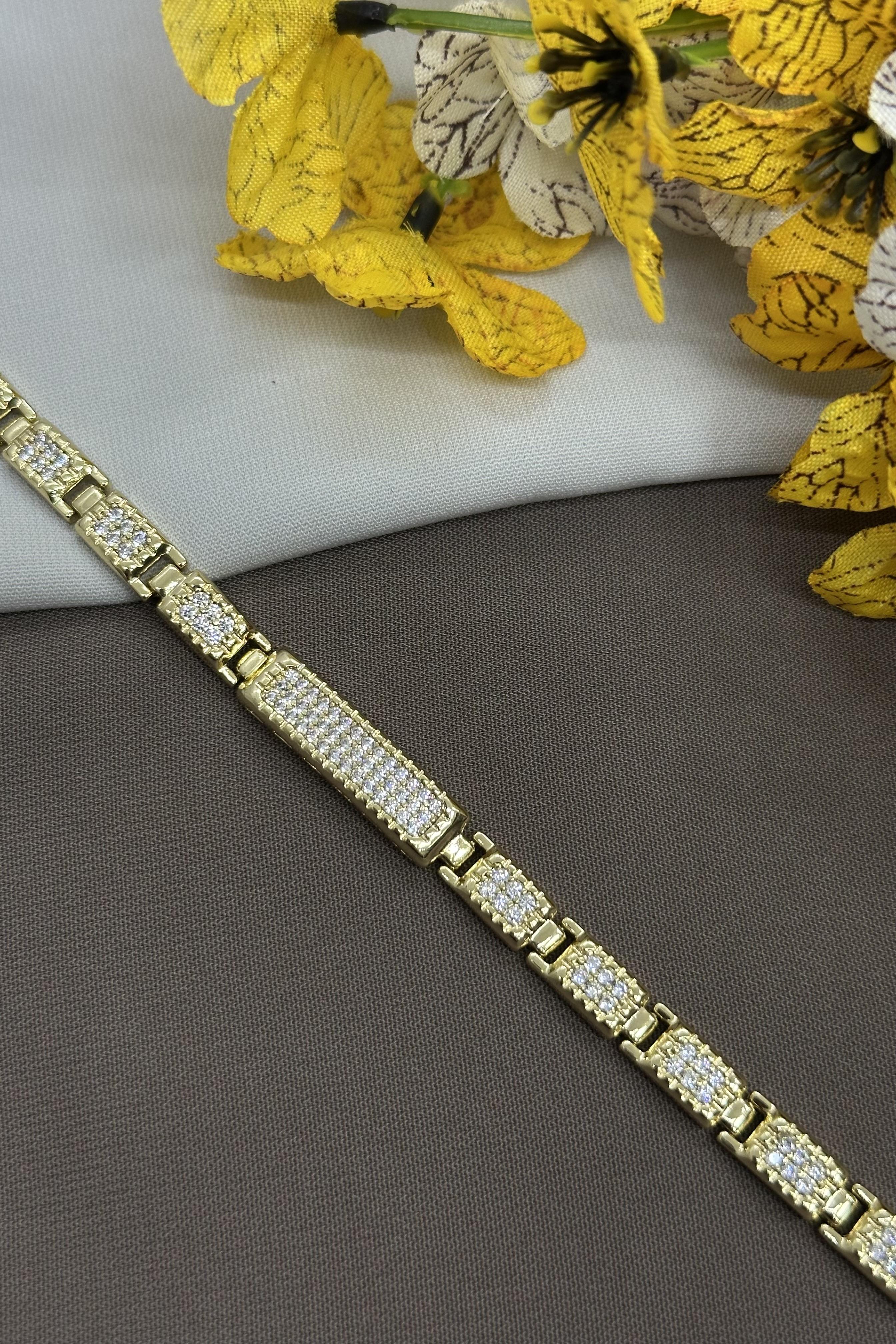 14K Taşlı Plaka Model Gold Vıp Bileklik