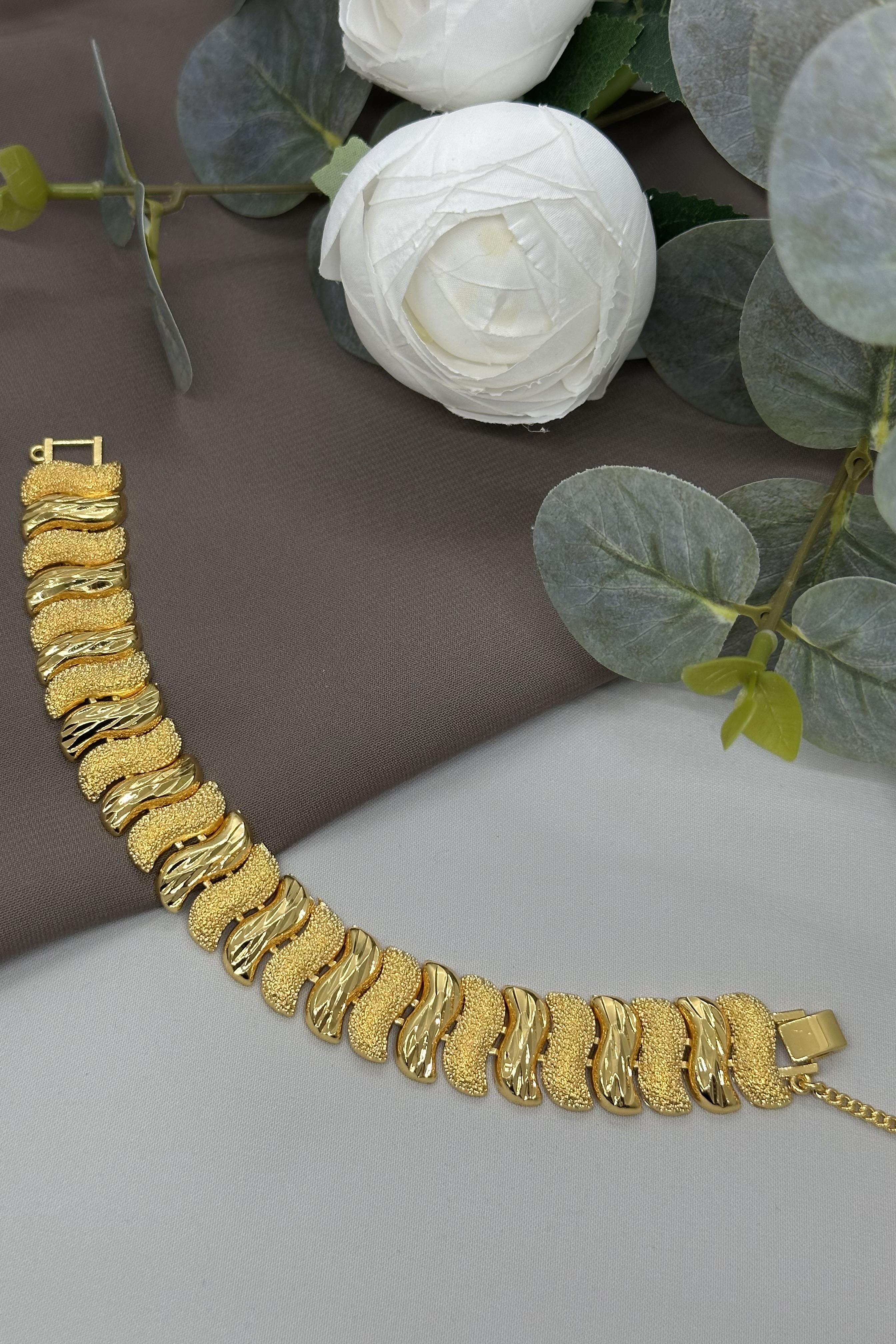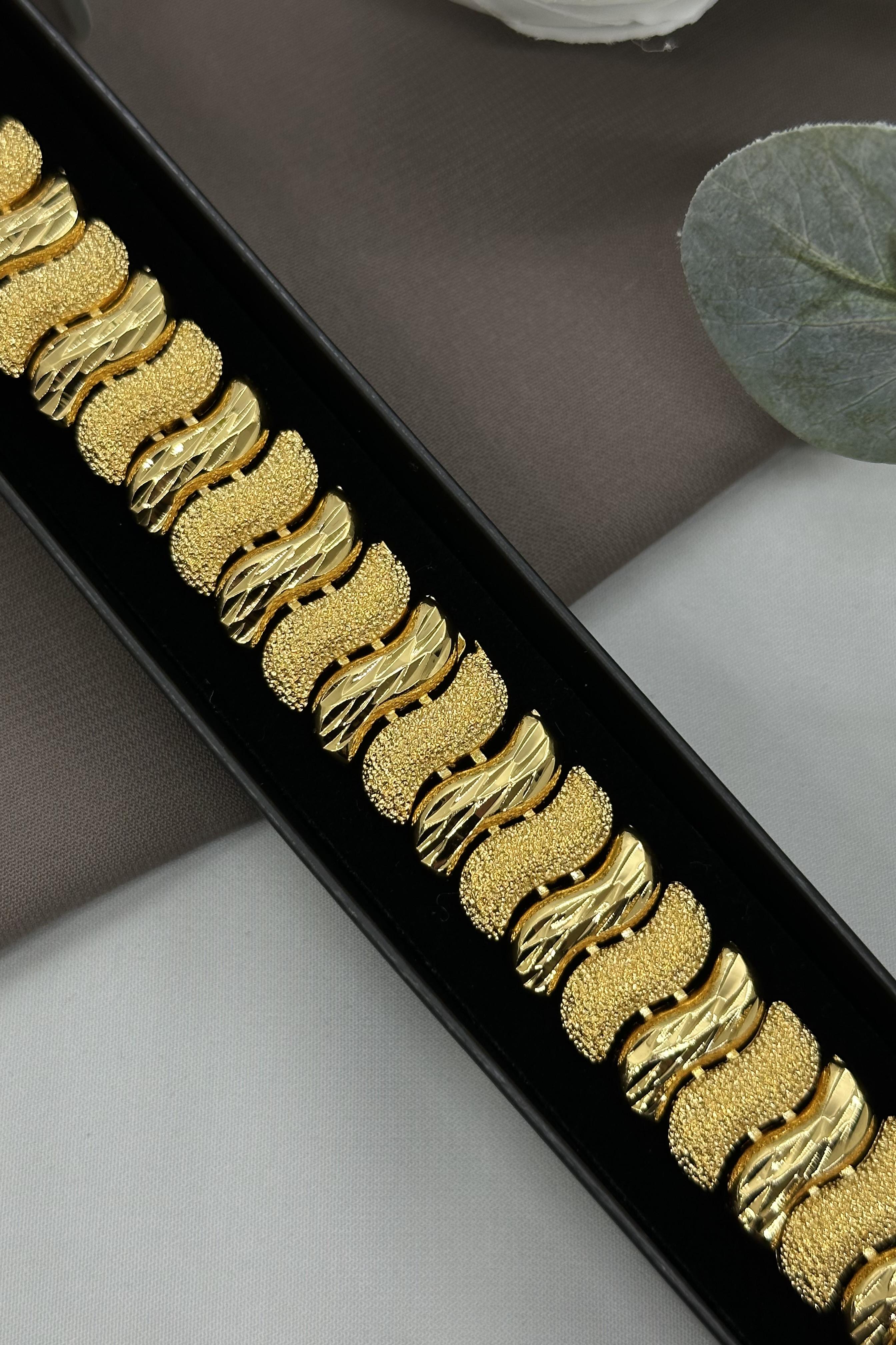 22 Ayar Altın Kaplama Dalga Model Bileklik