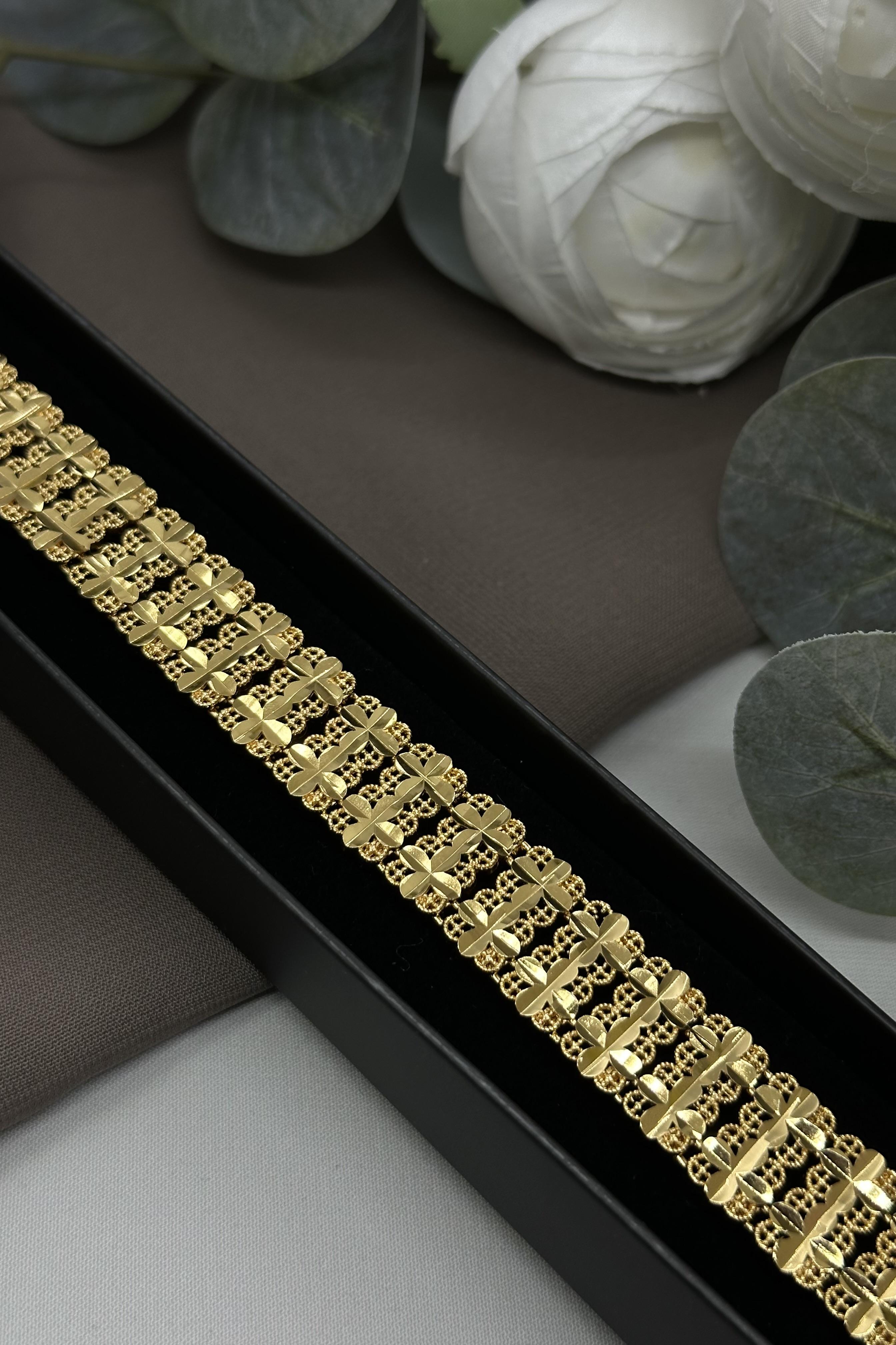22 Ayar Altın Kaplama Yonca İşlemeli Bileklik