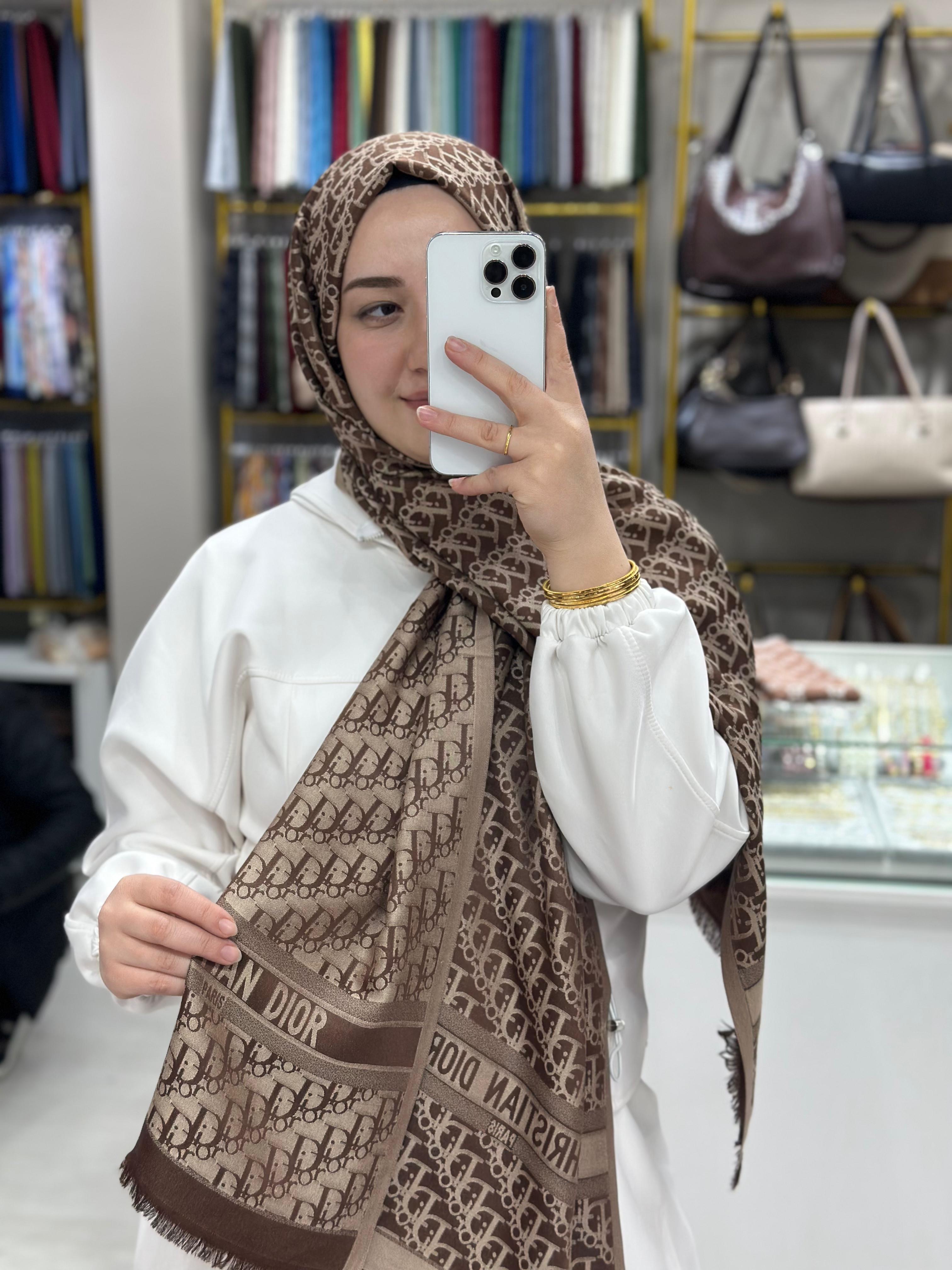 D*or Kahverengi-Bej Çift Taraflı İpek Kaşmir Şal