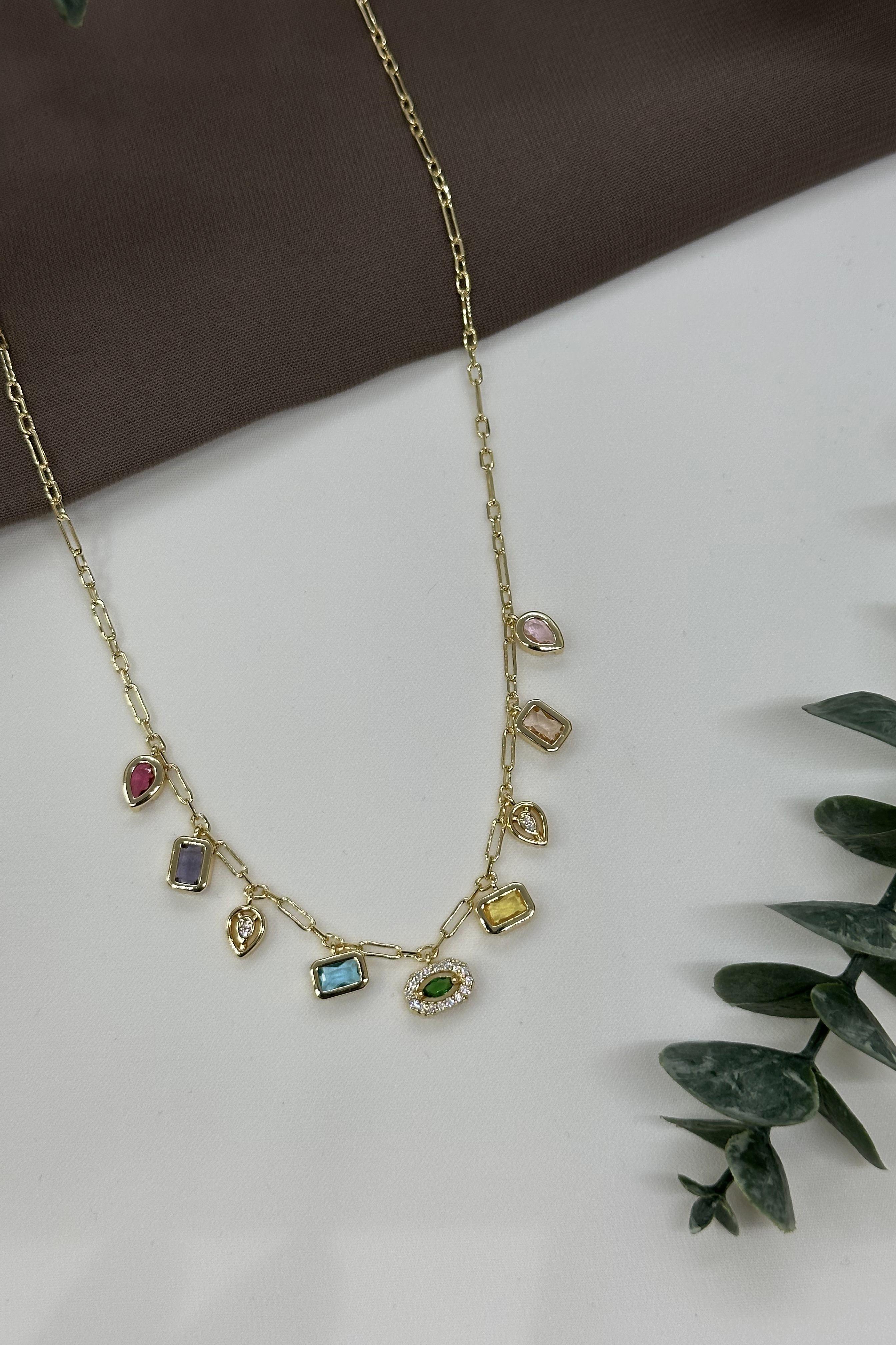 Element Taşlı Gold Vıp Kolye