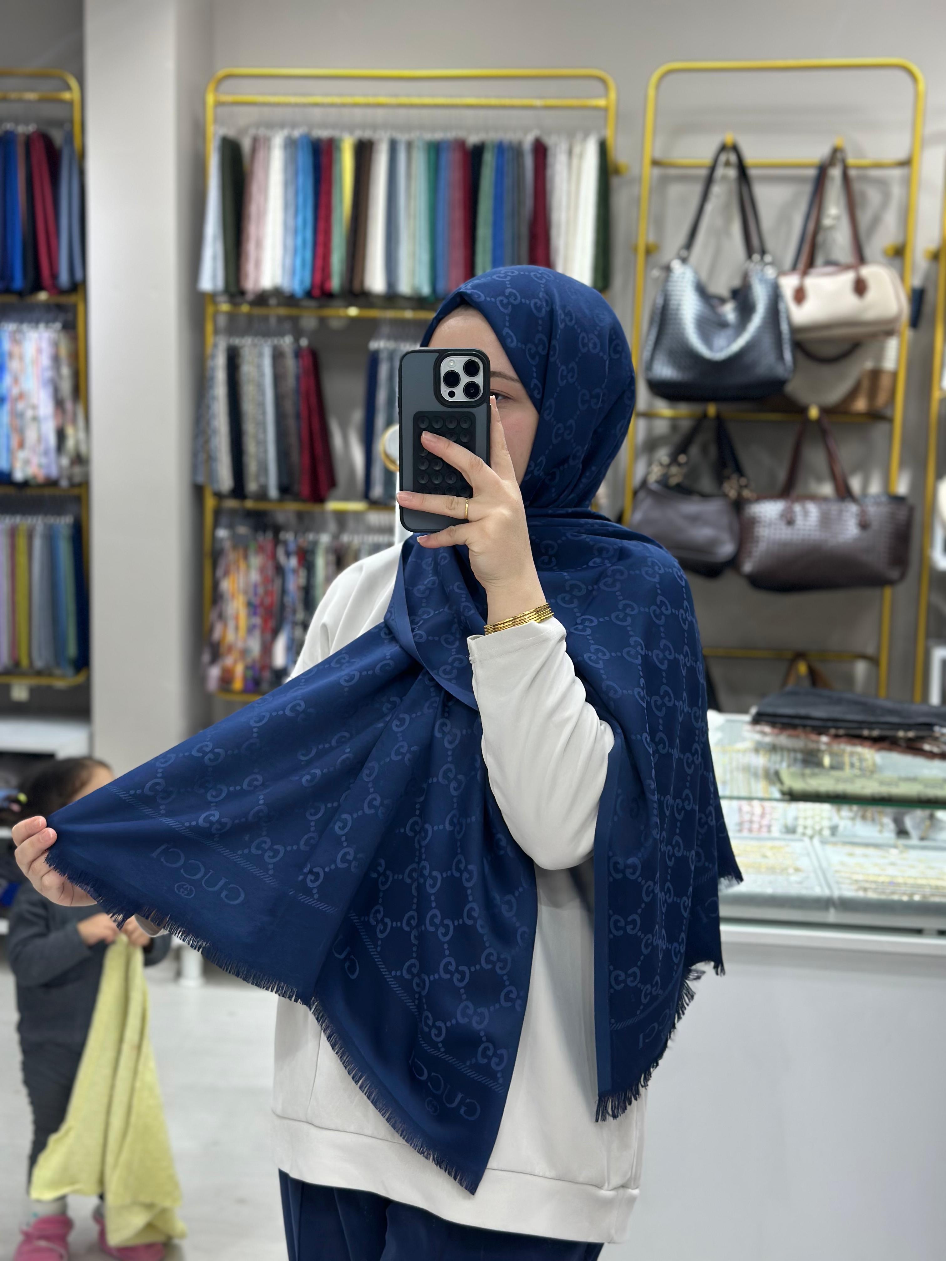 G*cci Lacivert-Mavi Çift Taraflı İpek Kaşmir Şal