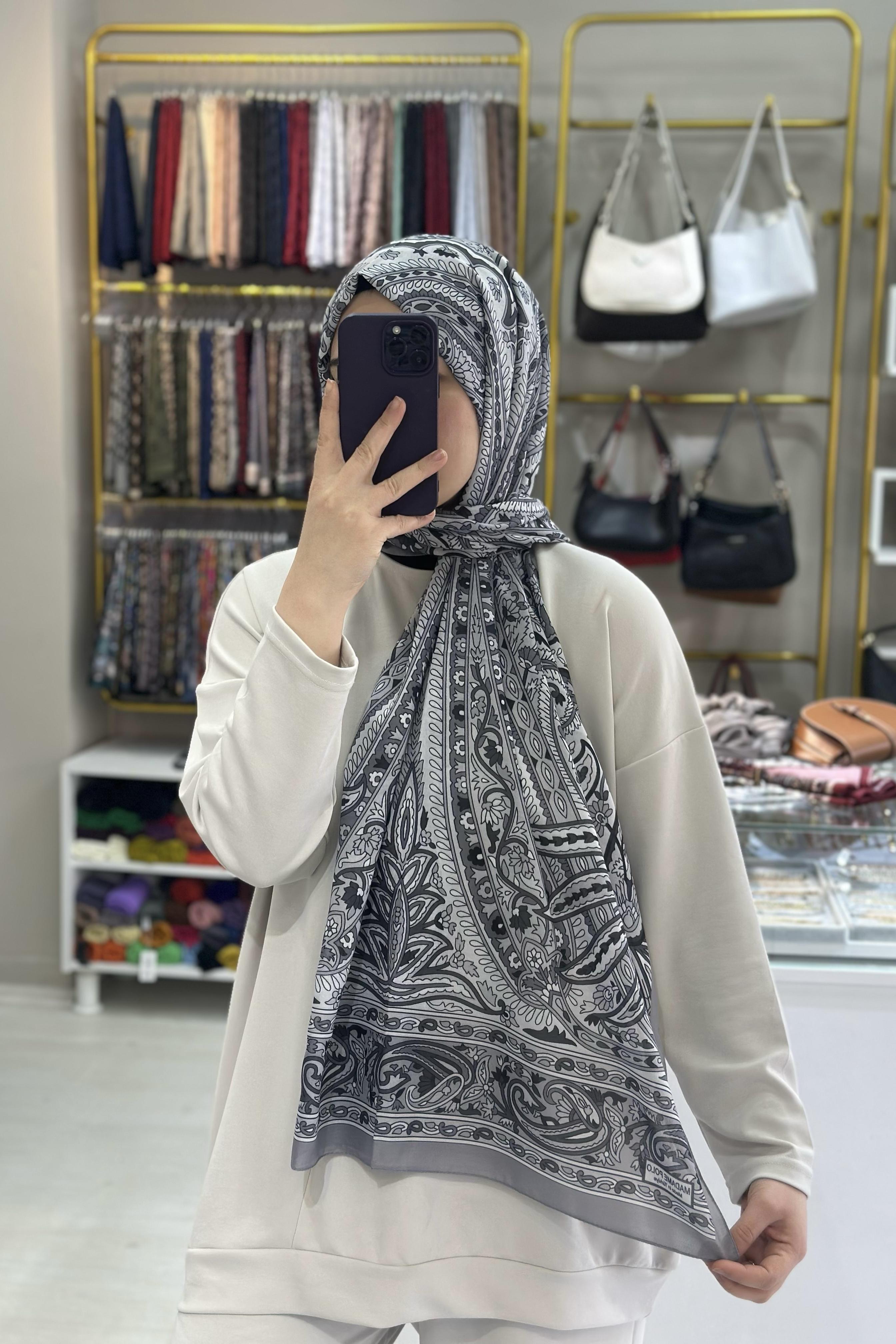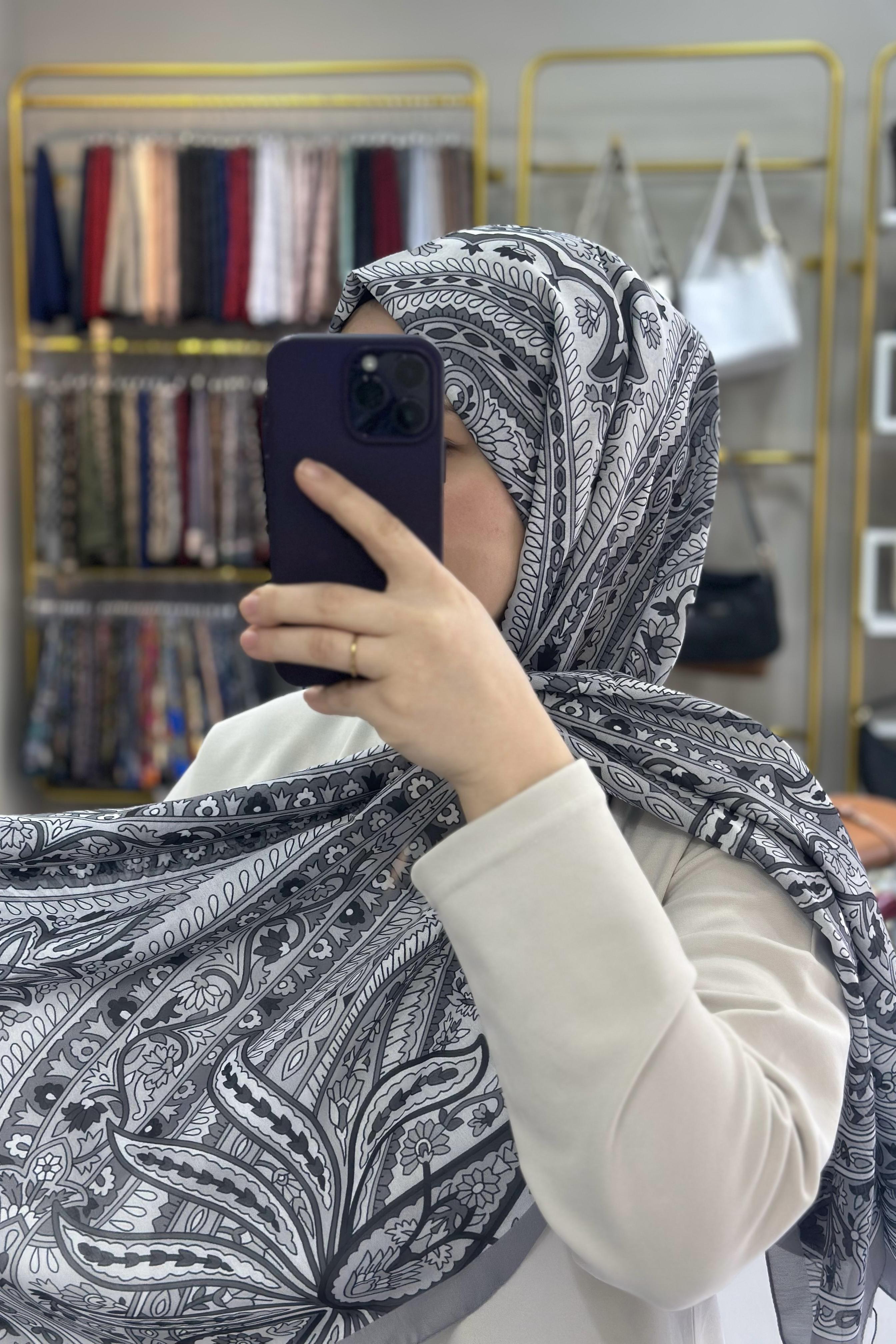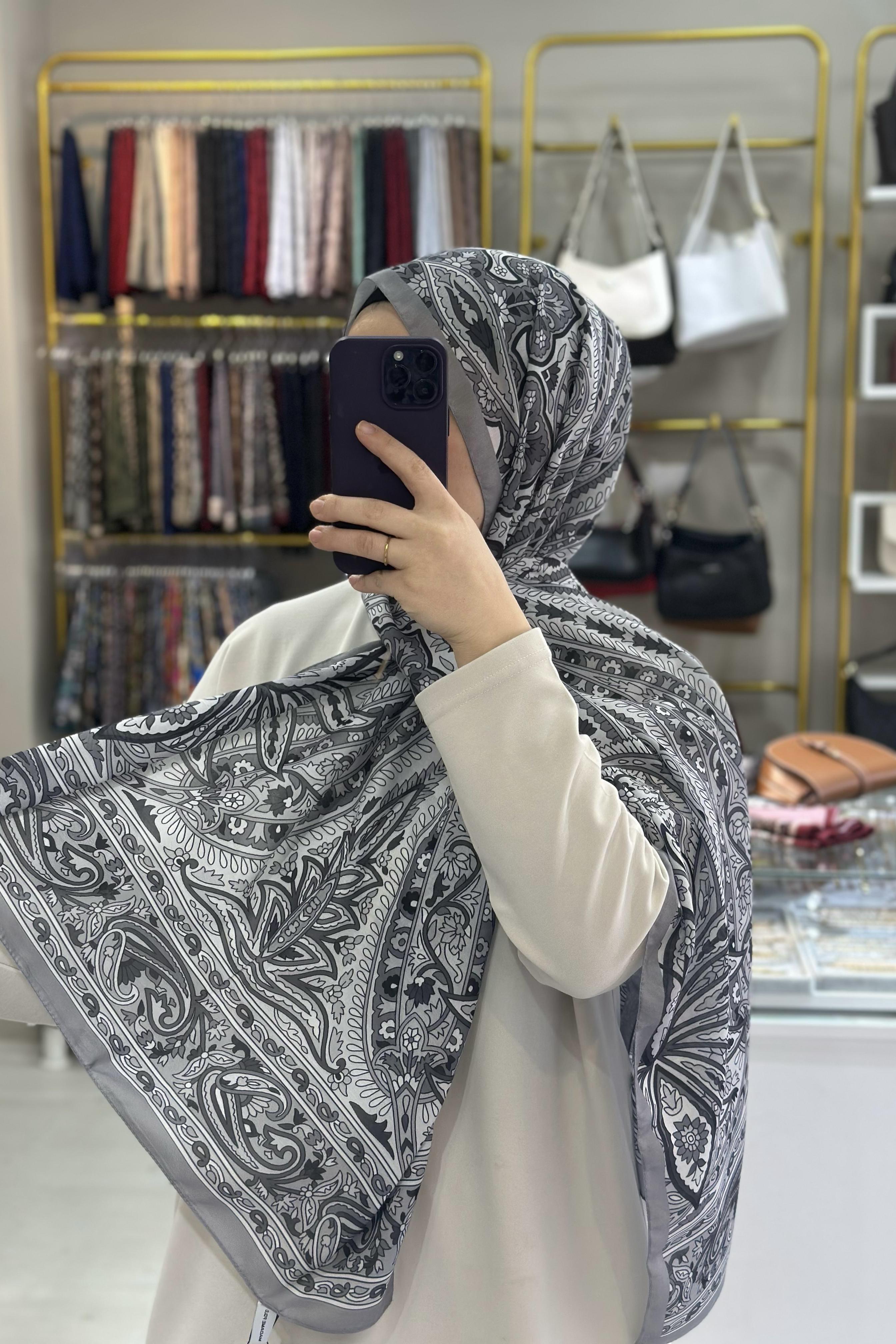 Gri Etnik Desenli Soft Şal