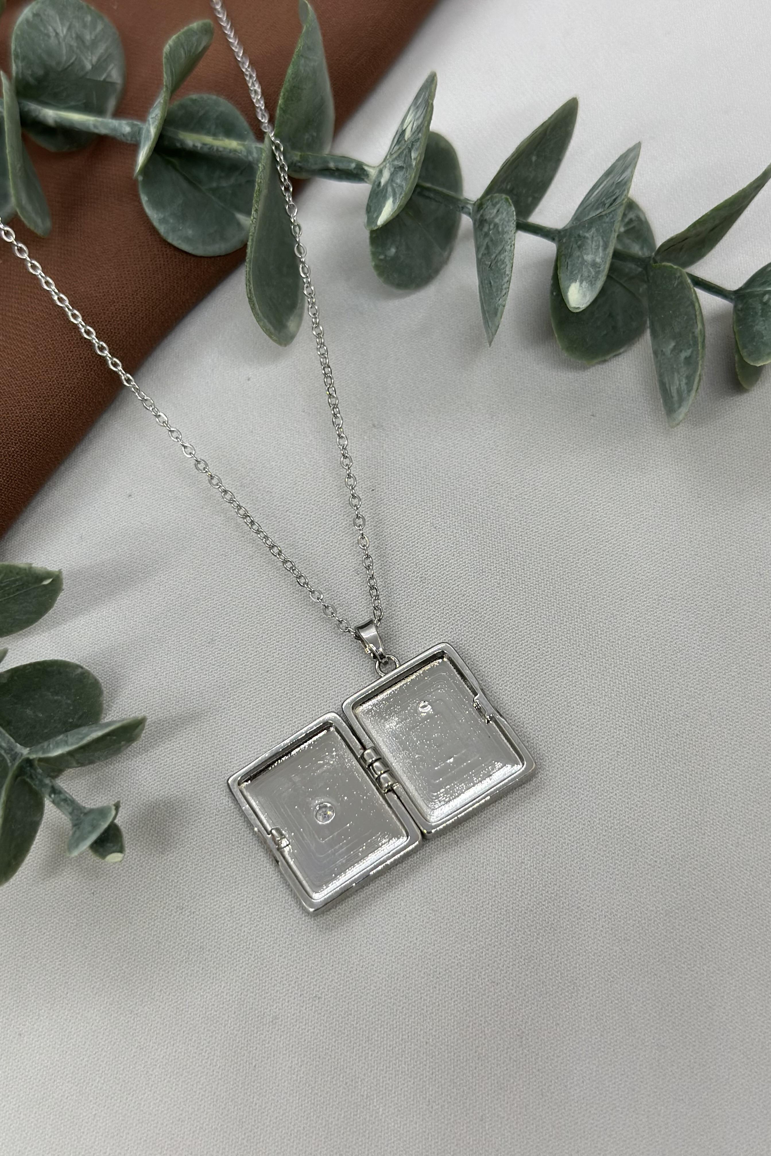 İçi Açılabilir Kitap Sılver Çelik Kolye