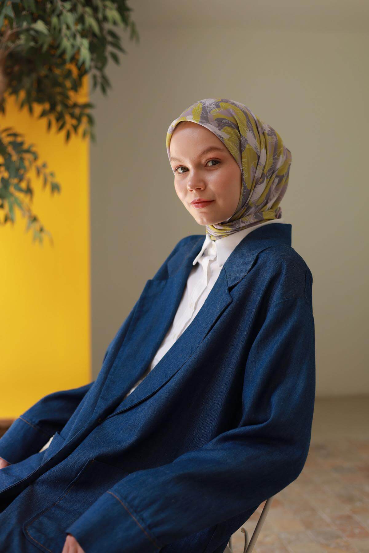 90x90 cm ideal ölçüsüyle, ister klasik ister modern bağlama stilleriyle kolay kullanım sağlar.