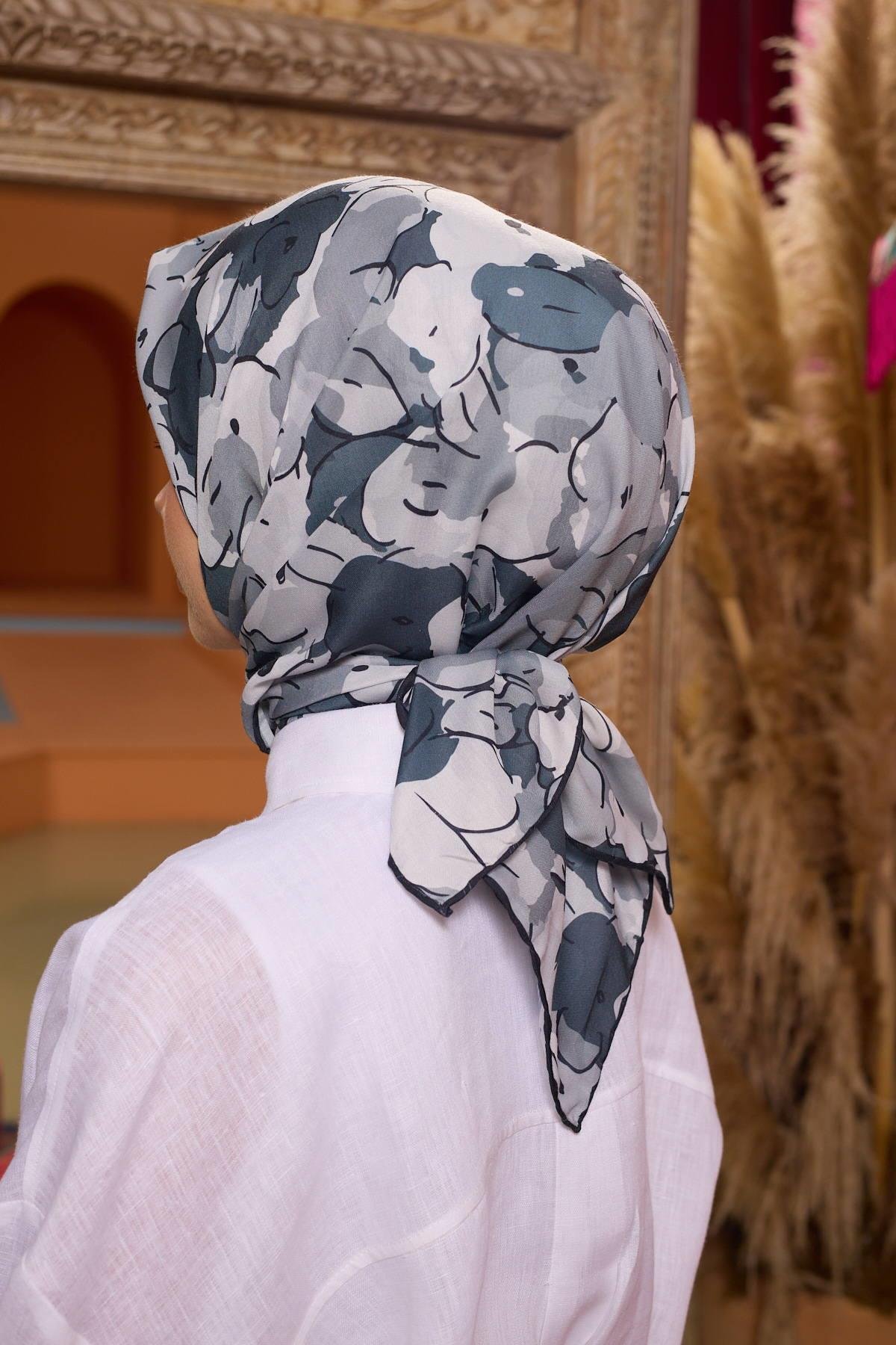 90x90 cm ideal ölçüsüyle, ister klasik ister modern bağlama stilleriyle kolay kullanım sağlar.