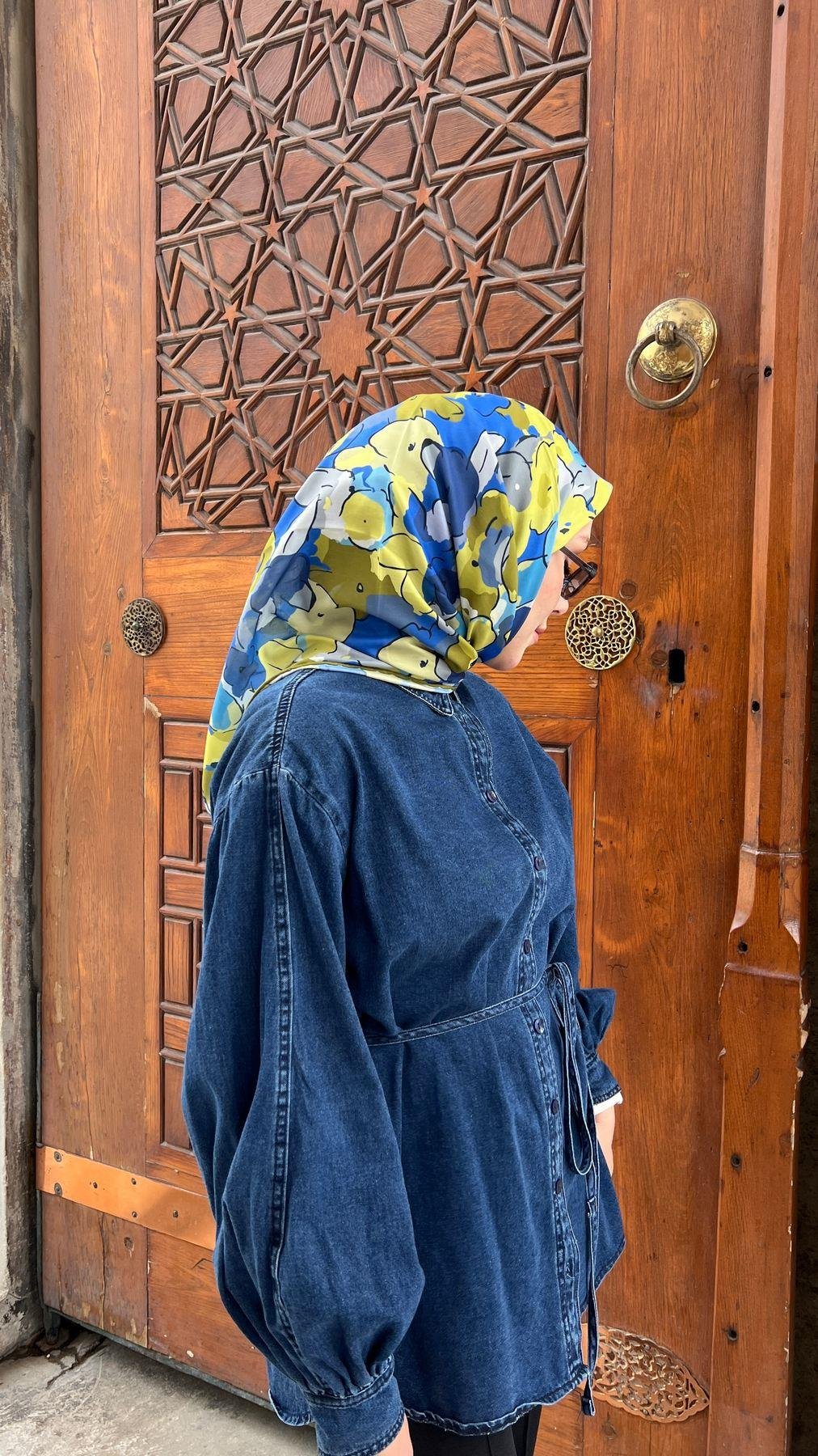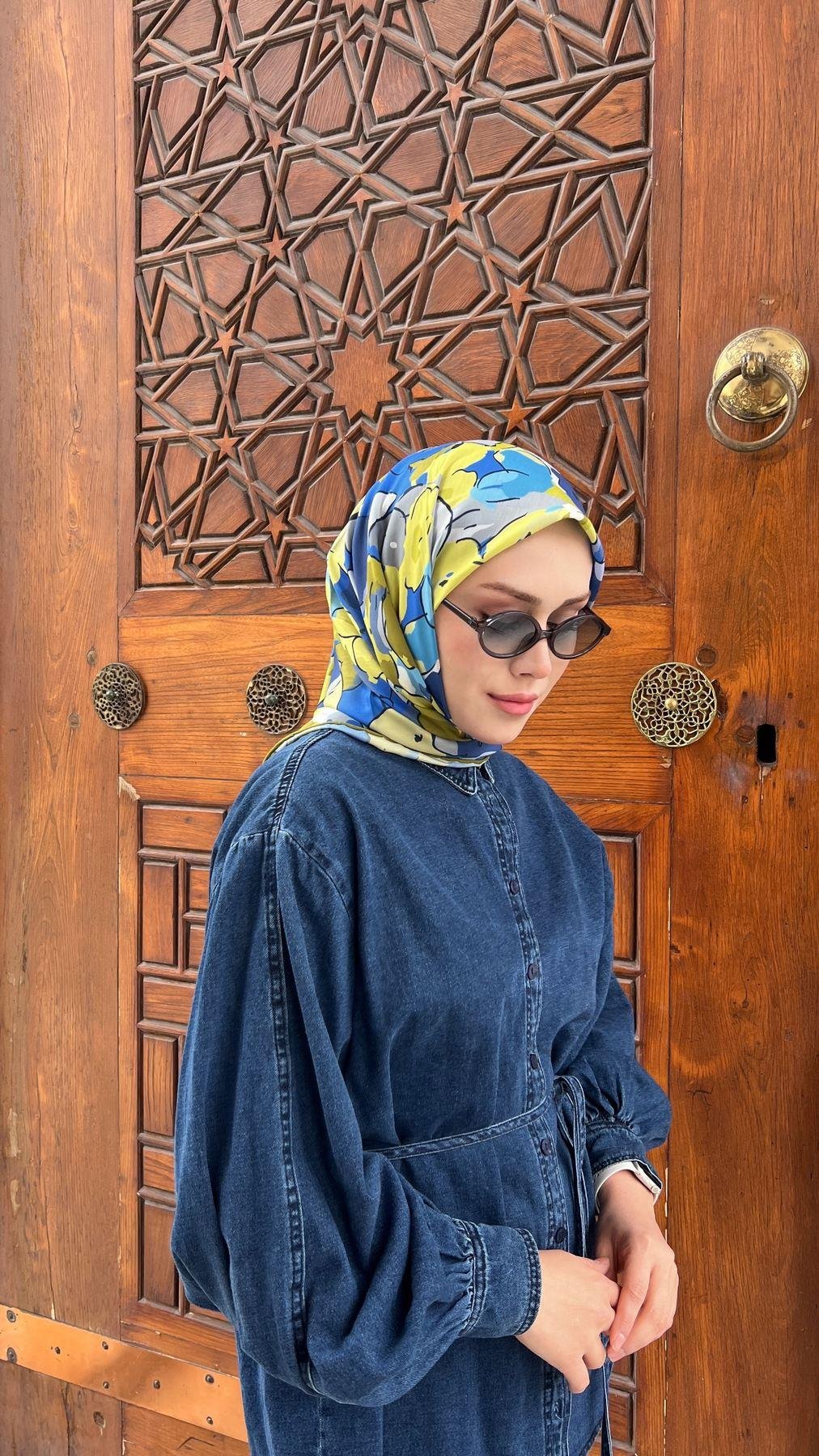 İpekhan Mavi-Sarı Soft Eşarp