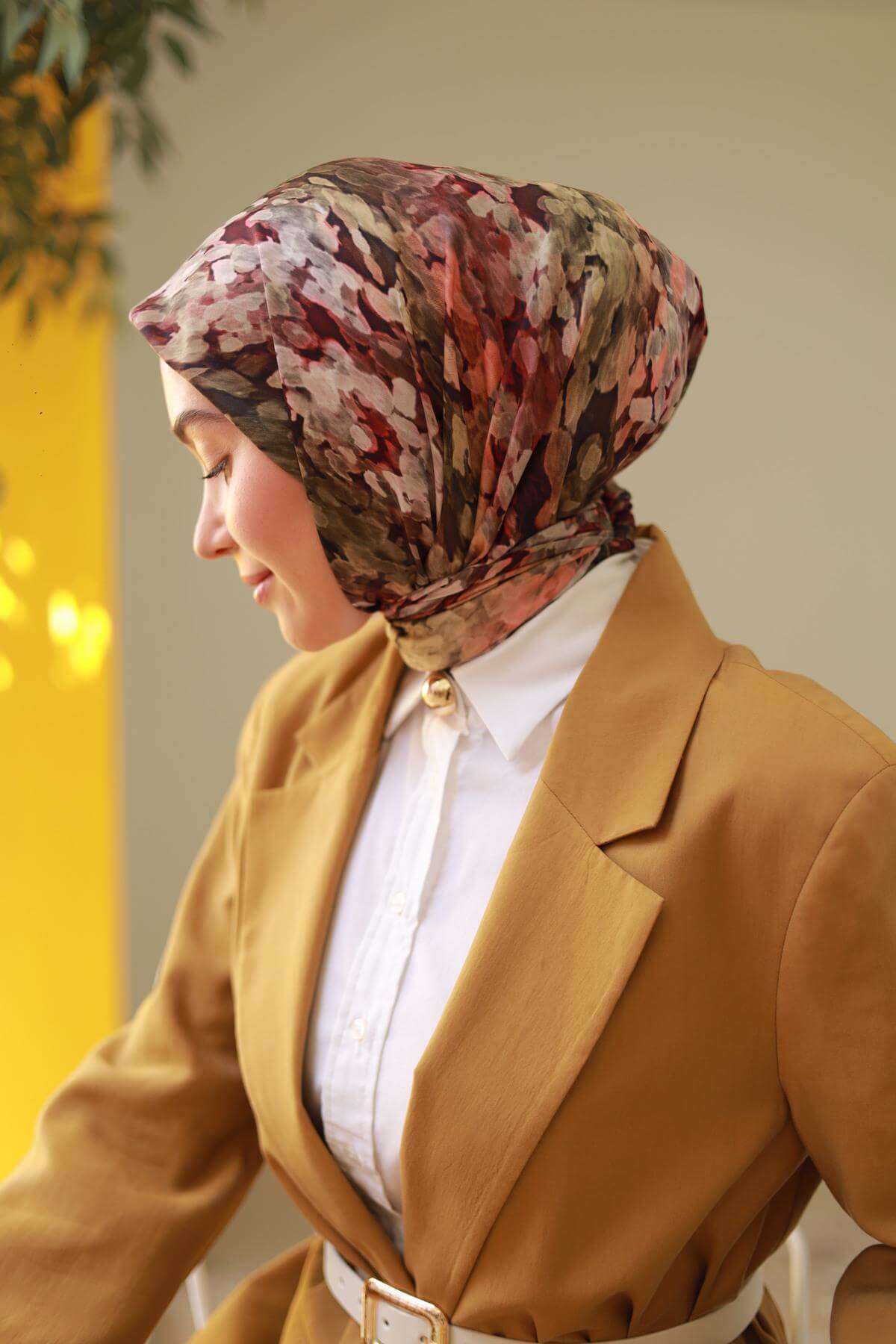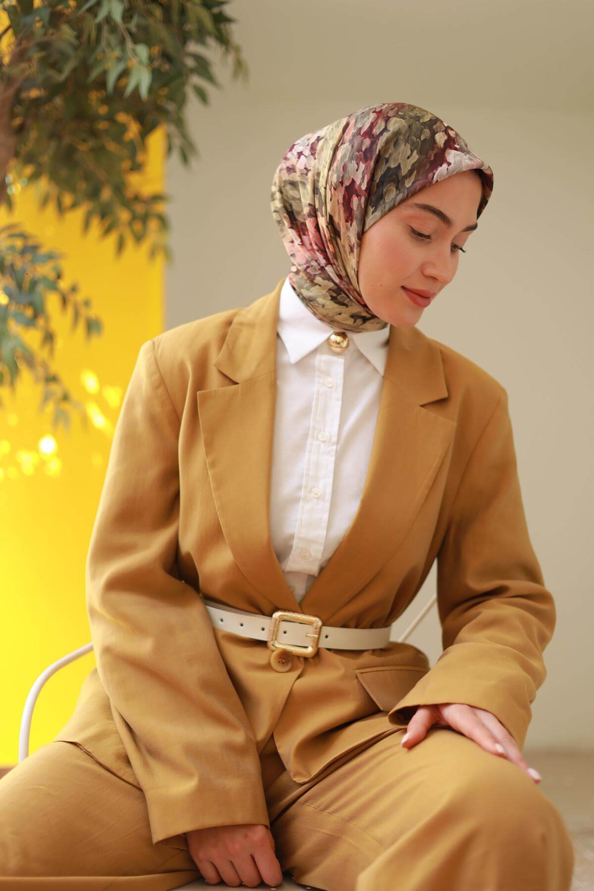 90x90 cm ideal ölçüsüyle, ister klasik ister modern bağlama stilleriyle kolay kullanım sağlar.