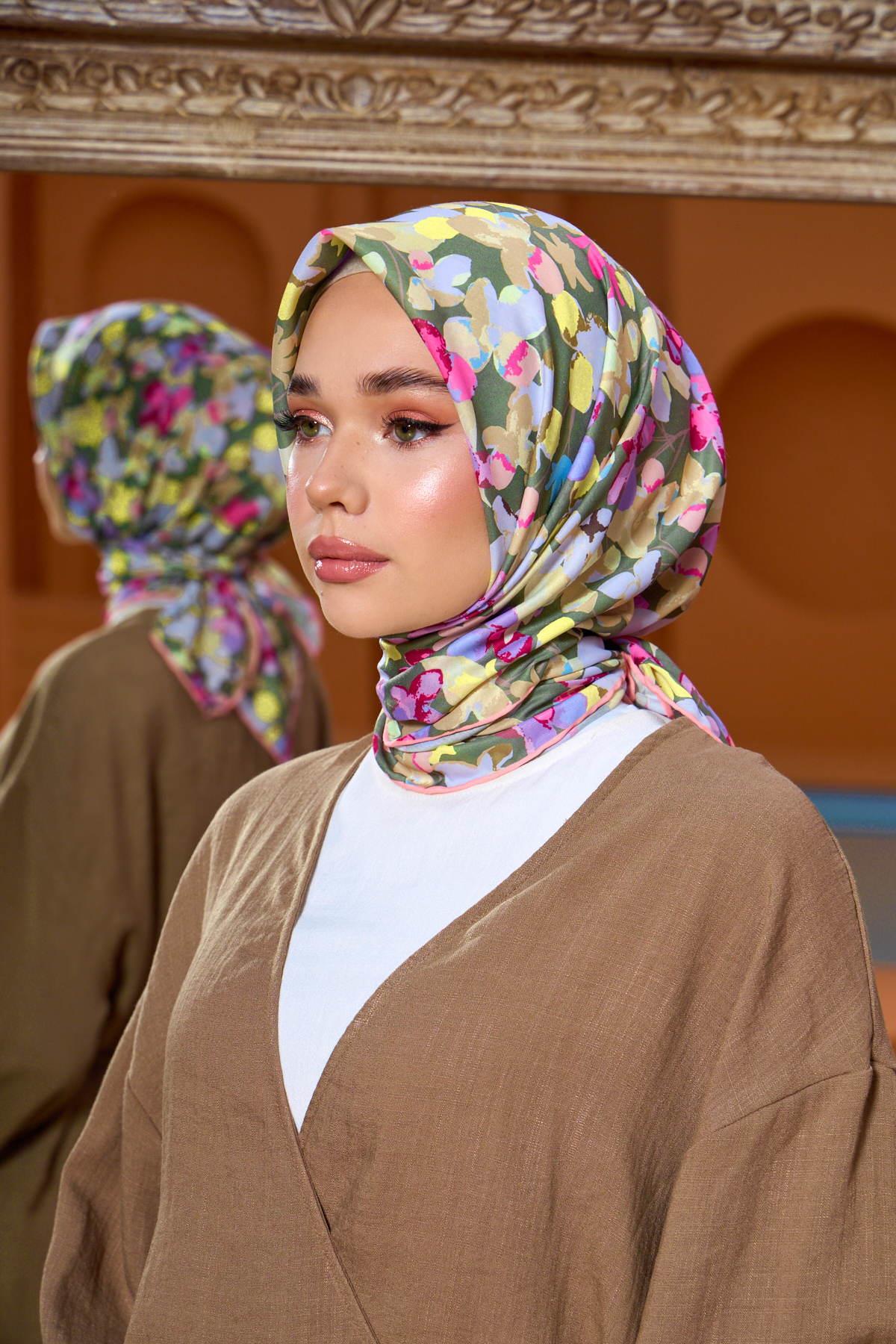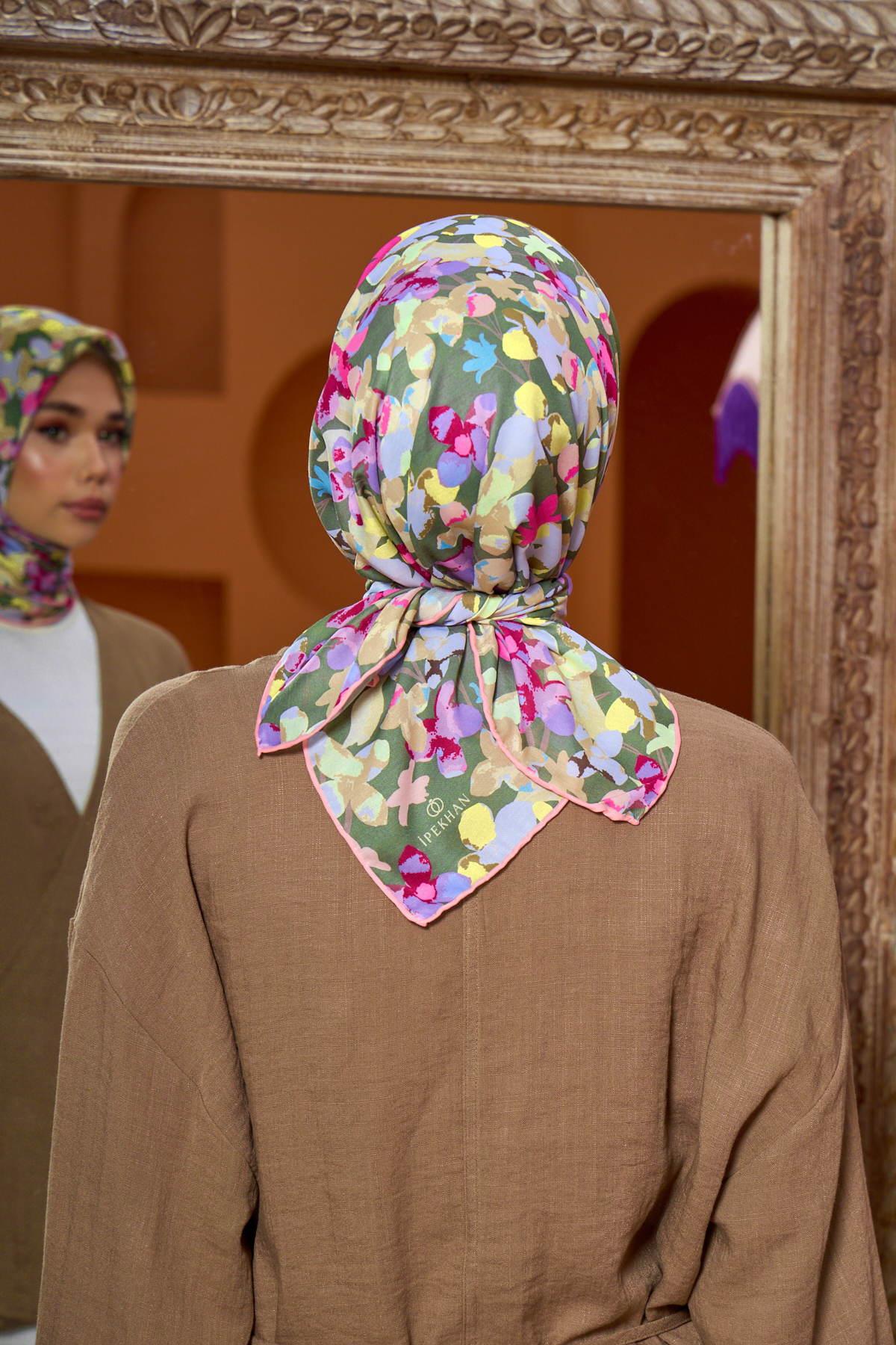 90x90 cm ideal ölçüsüyle, ister klasik ister modern bağlama stilleriyle kolay kullanım sağlar.