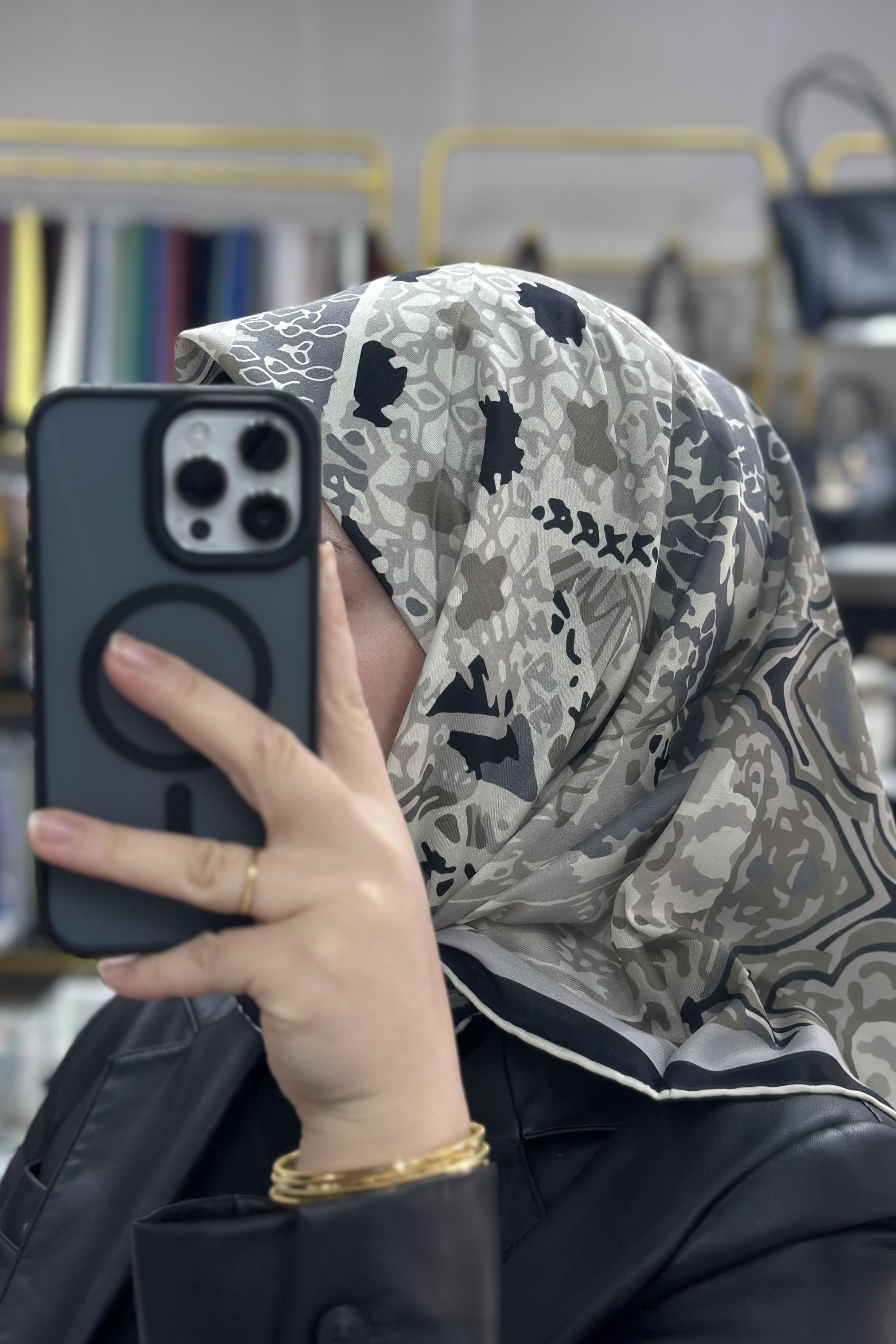 90x90 cm ideal ölçüsüyle, ister klasik ister modern bağlama stilleriyle kolay kullanım sağlar.