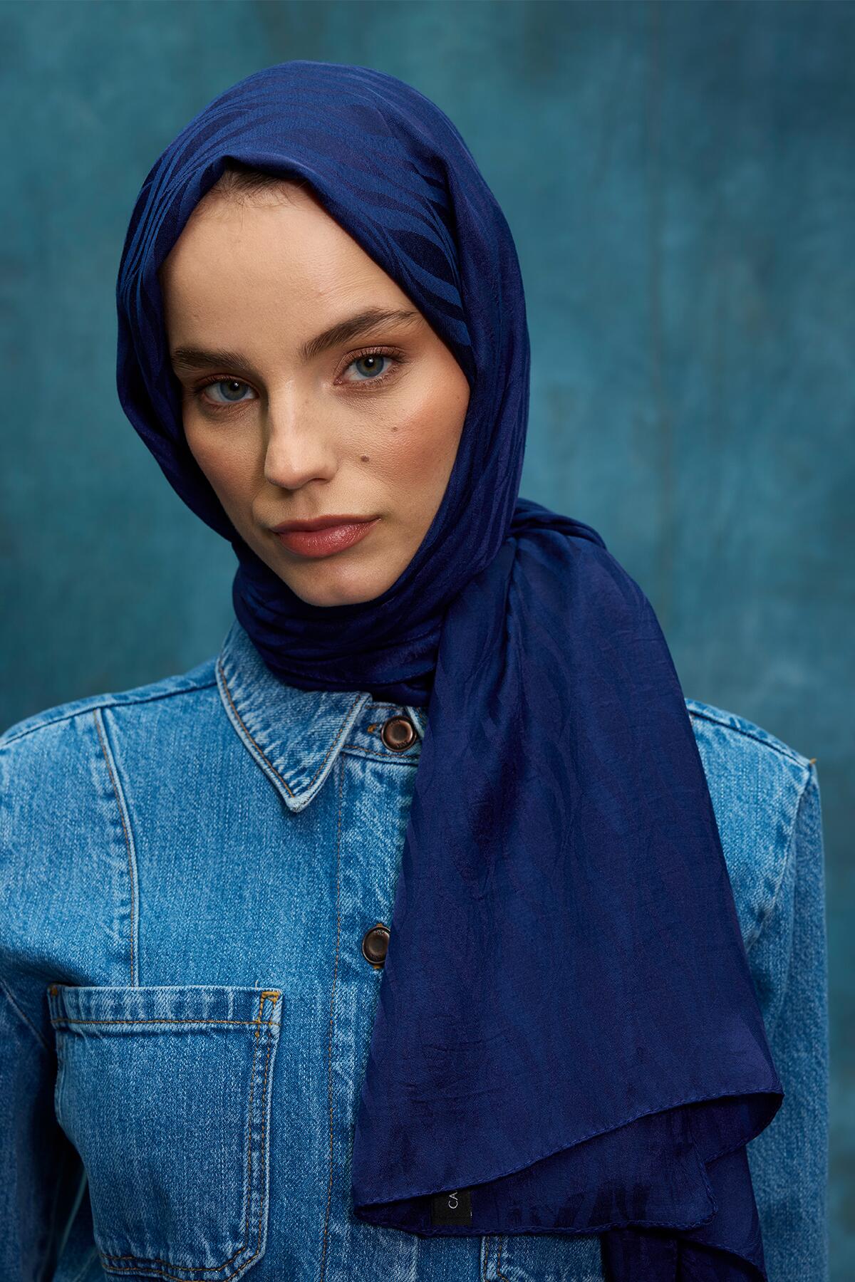 İtalyan Jakar Şal Dalga Desen - Gece Mavisi