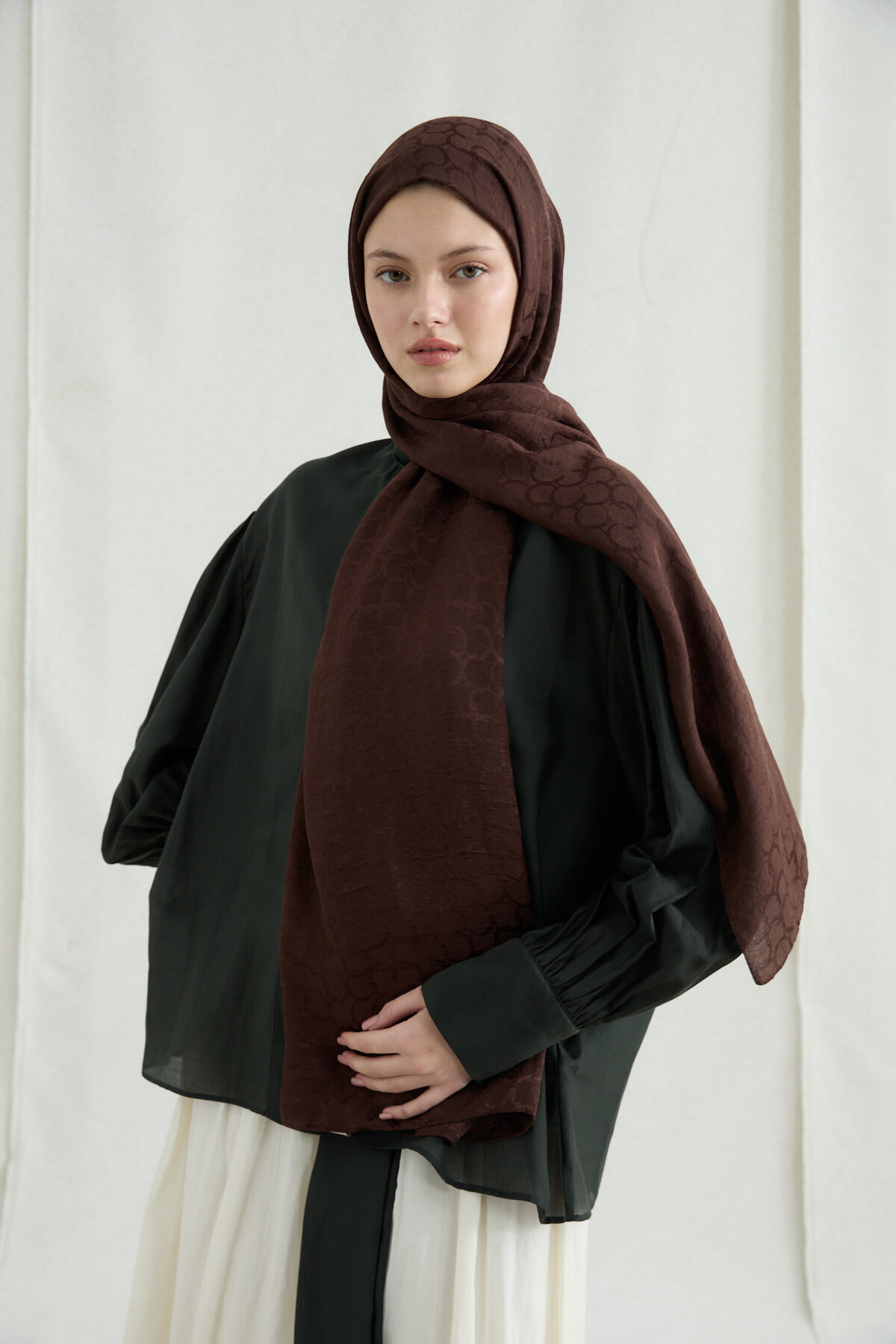 İtalyan Jakar Şal Halka Desen - Kahve