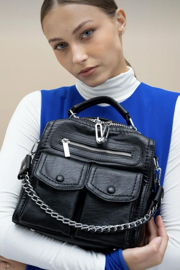 İthal Deri Siyah Kadın El&Omuz&Sırt Çantası