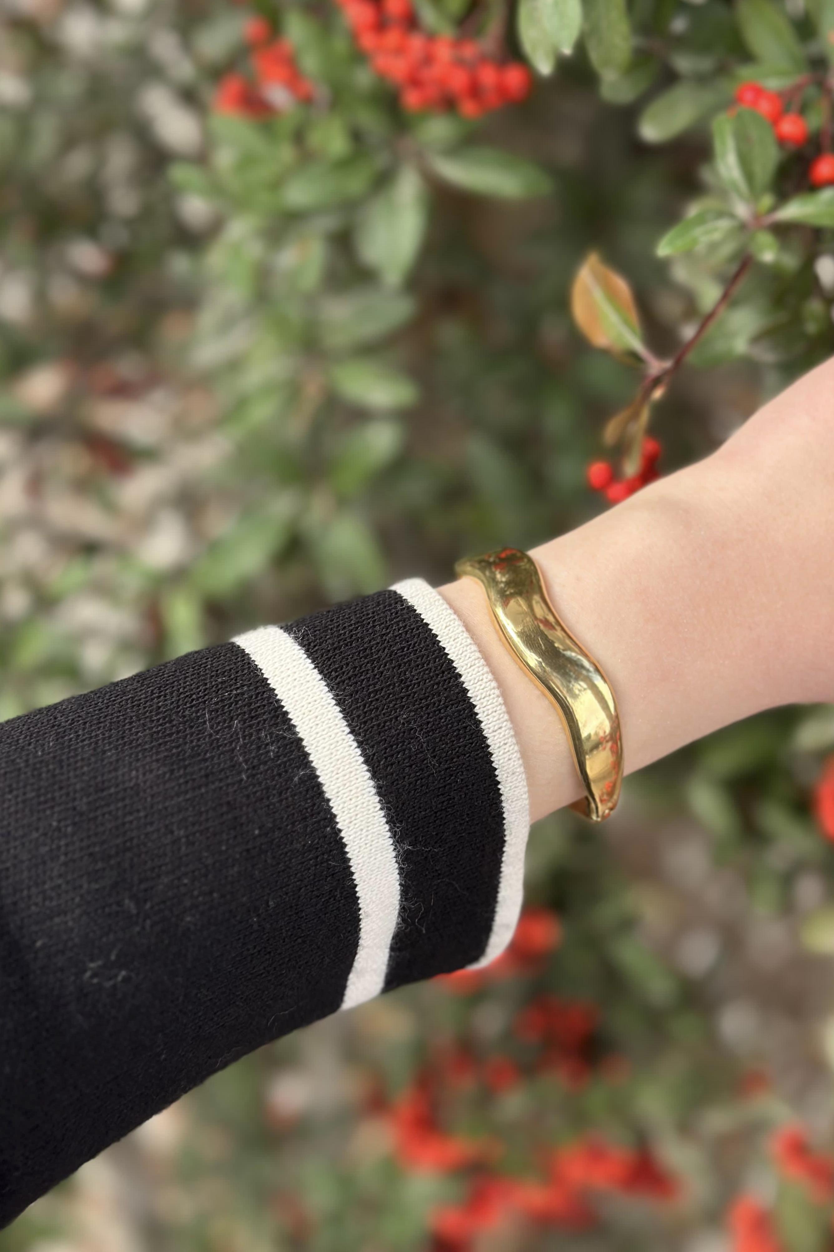 Kalın Zikzak Model Gold Çelik Kelepçe Bileklik