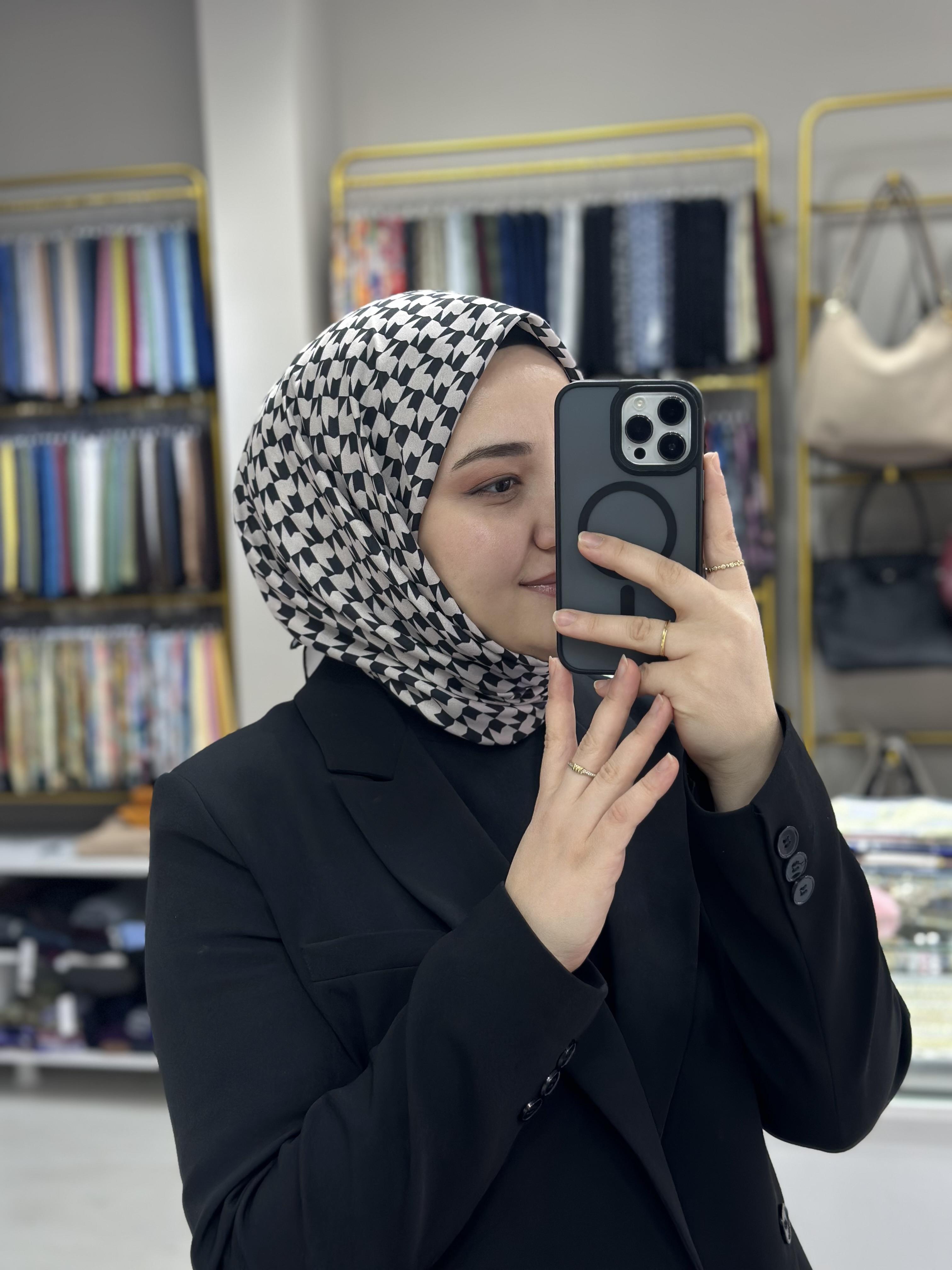 Kare Desenli Pamuk Soft Eşarp