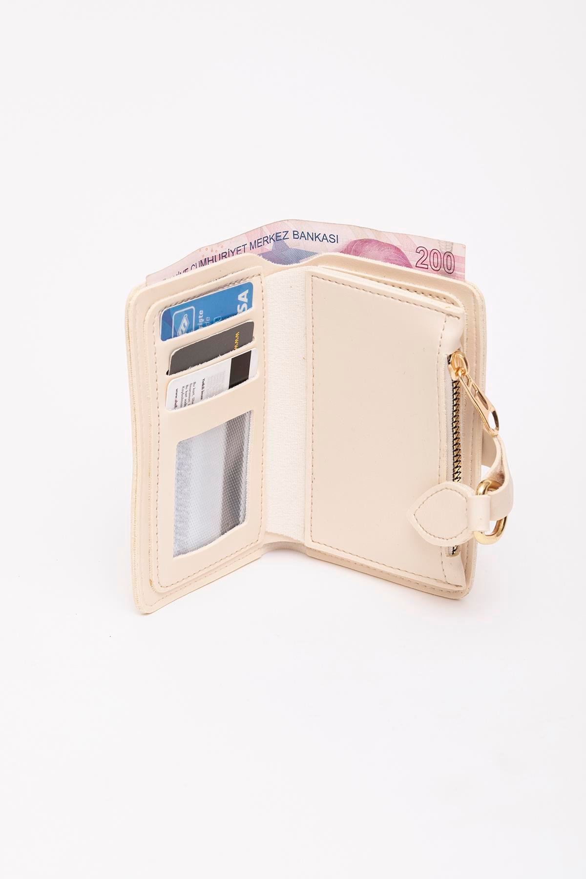 Krem Damla Tokalı Çıtçıtlı Ön Cepli Bozuk Ve Kağıt Para Bölmeli Kartlıklı Şık Cüzdan