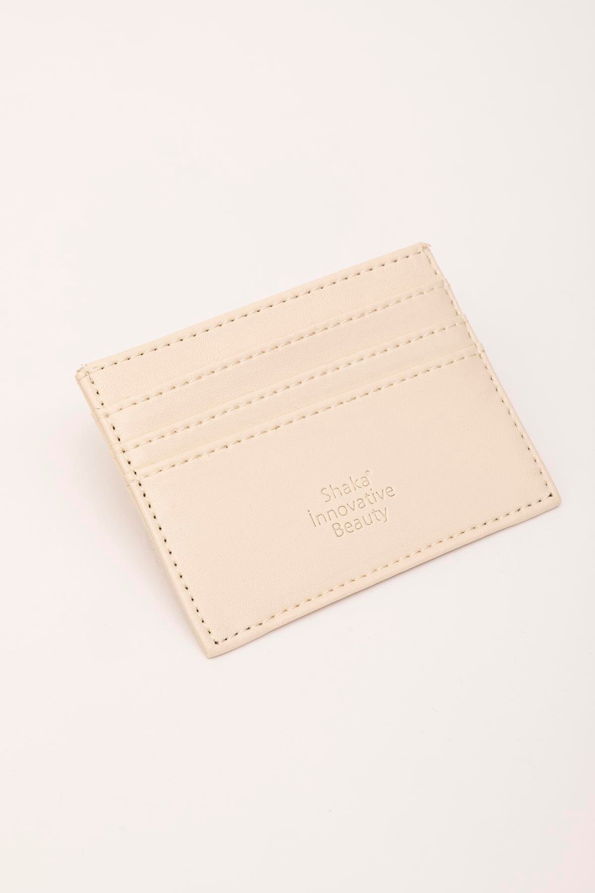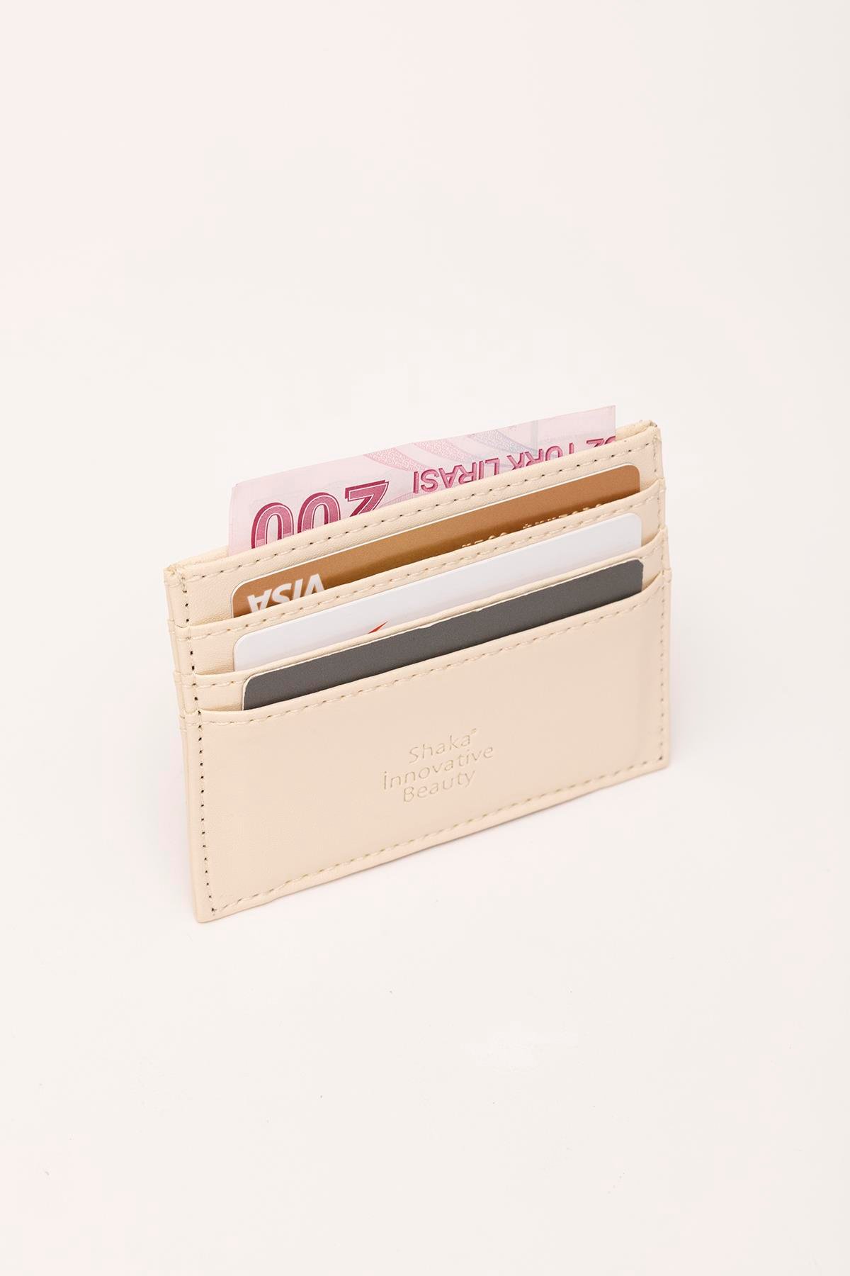 Krem Unisex Suni Deri Süper İnce Model Kağıt Para Bölmeli Kredi Kartı Ve Kartvizitlik Kartlık Cüzdan