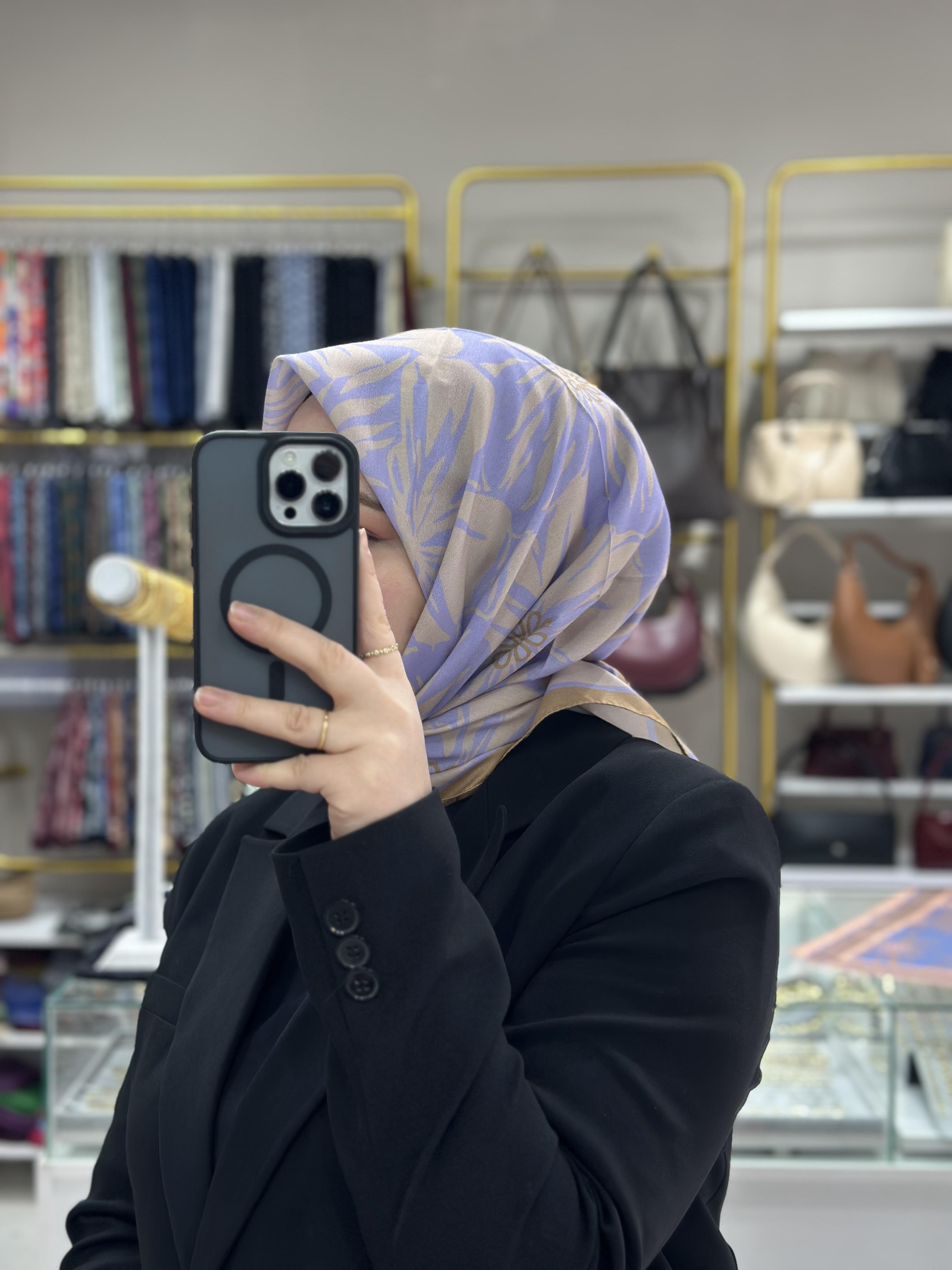 Lila Yaprak Desenli Soft Eşarp
