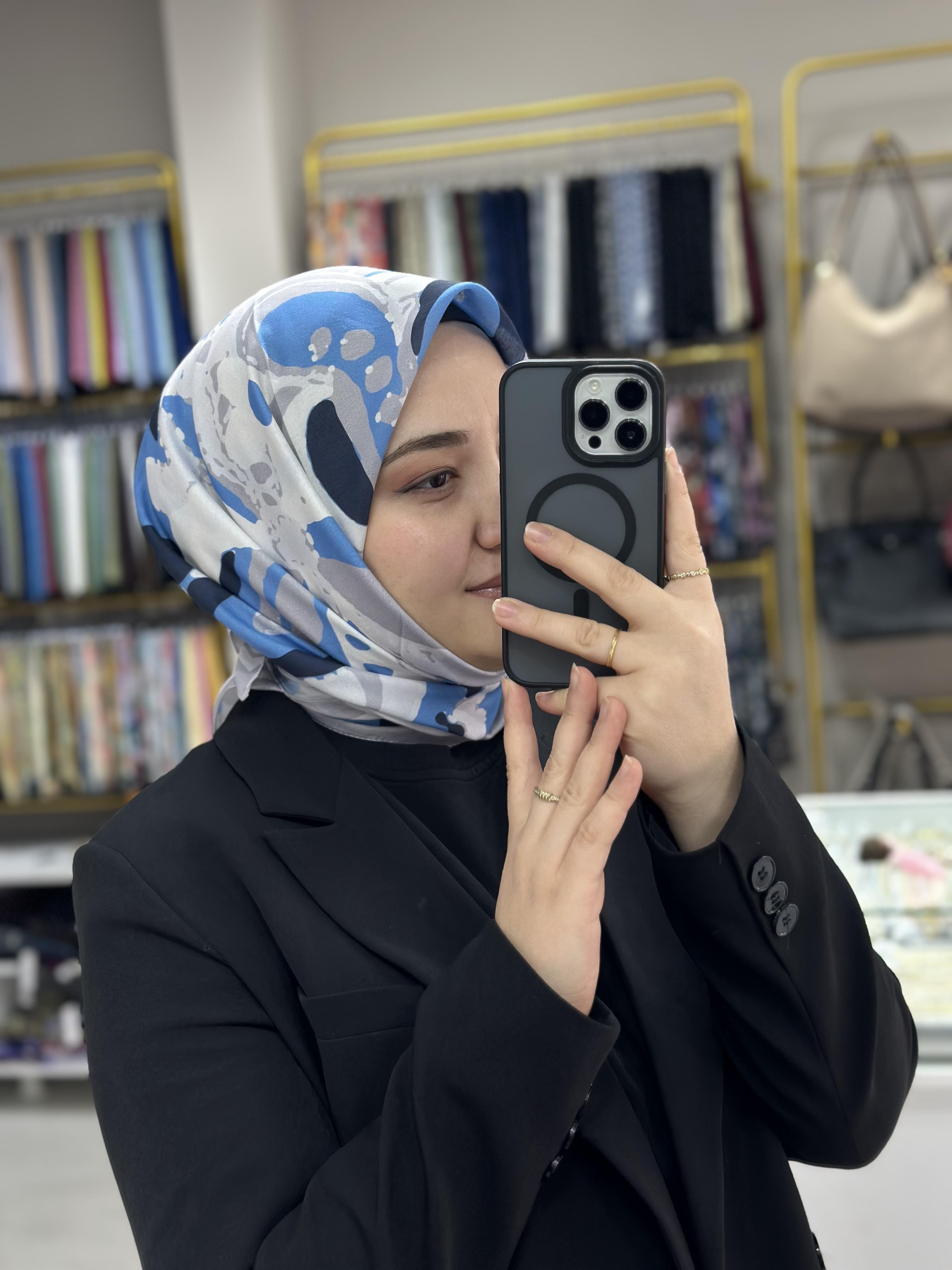 Mavi-Gri Boya Desen Soft Eşarp