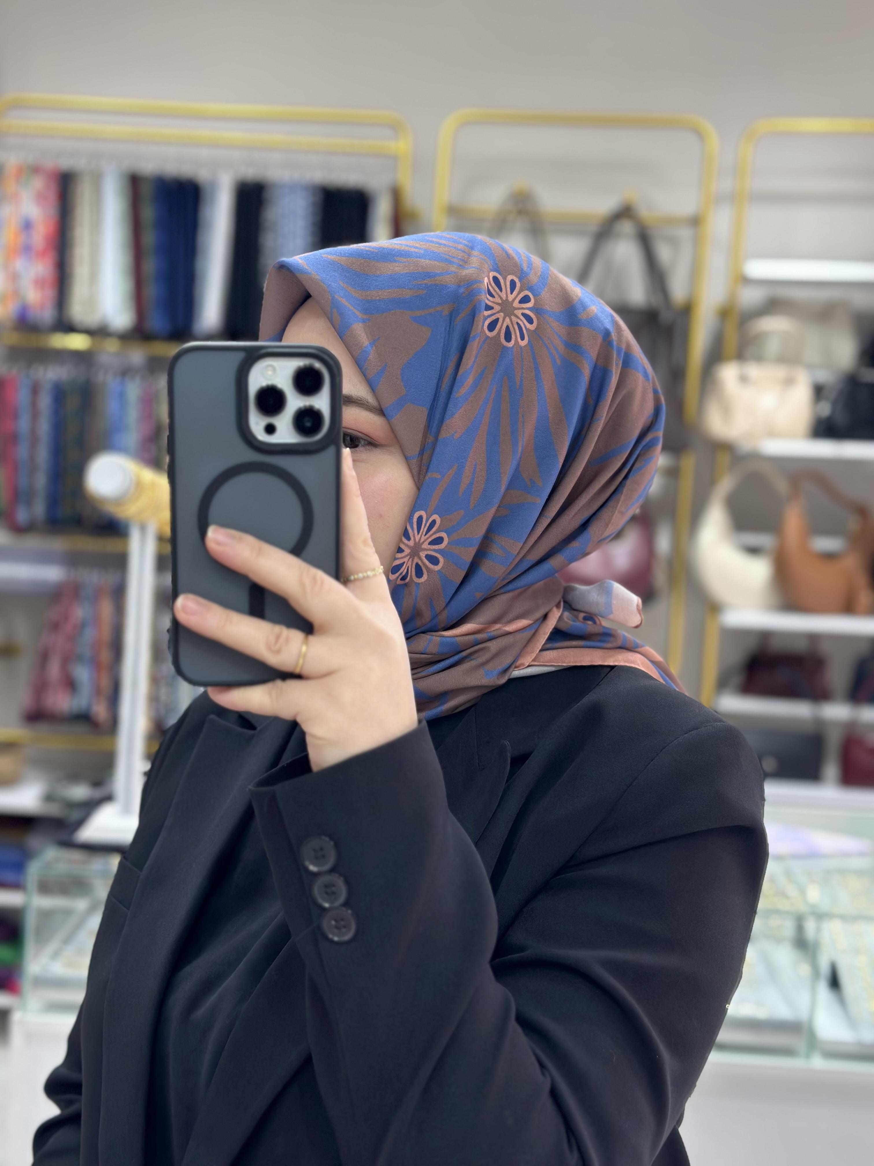Mavi-Kahve Soft Eşarp