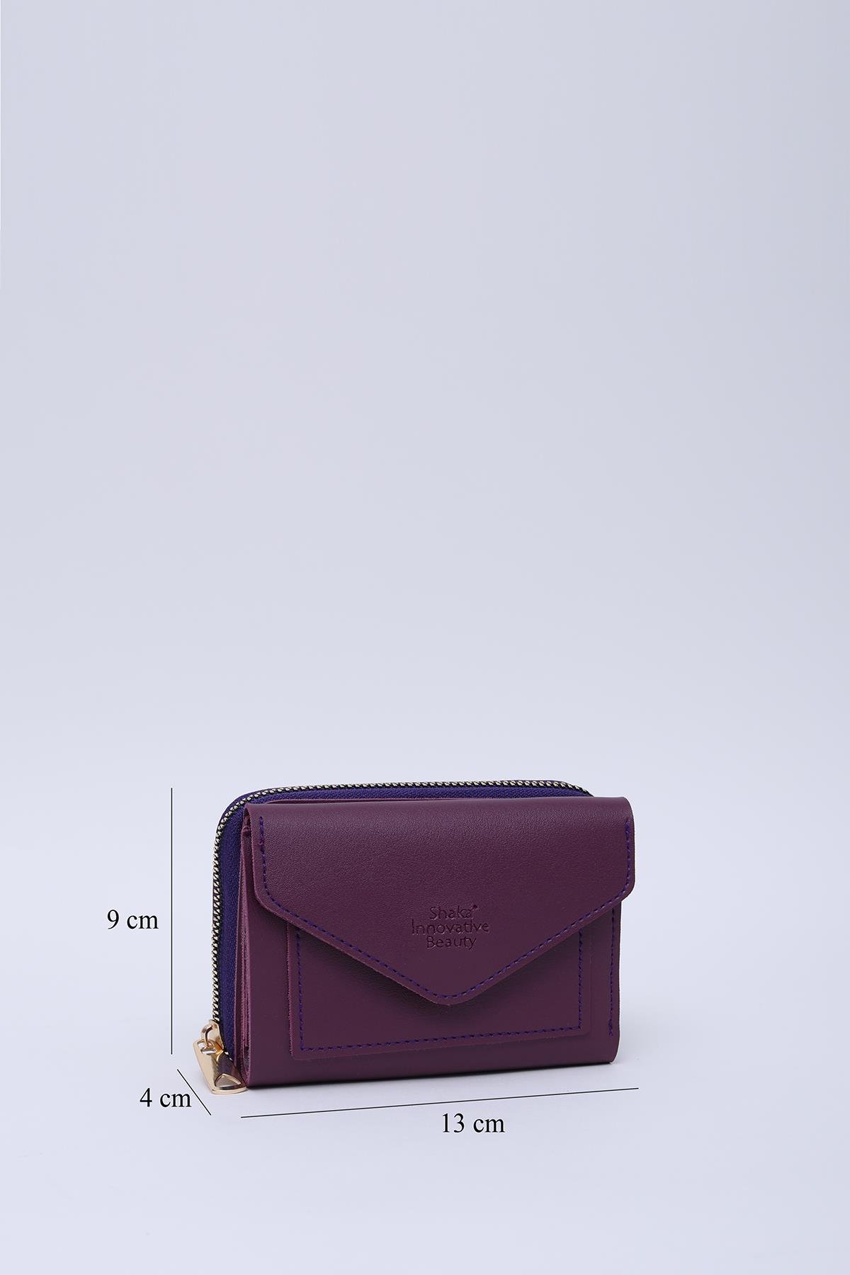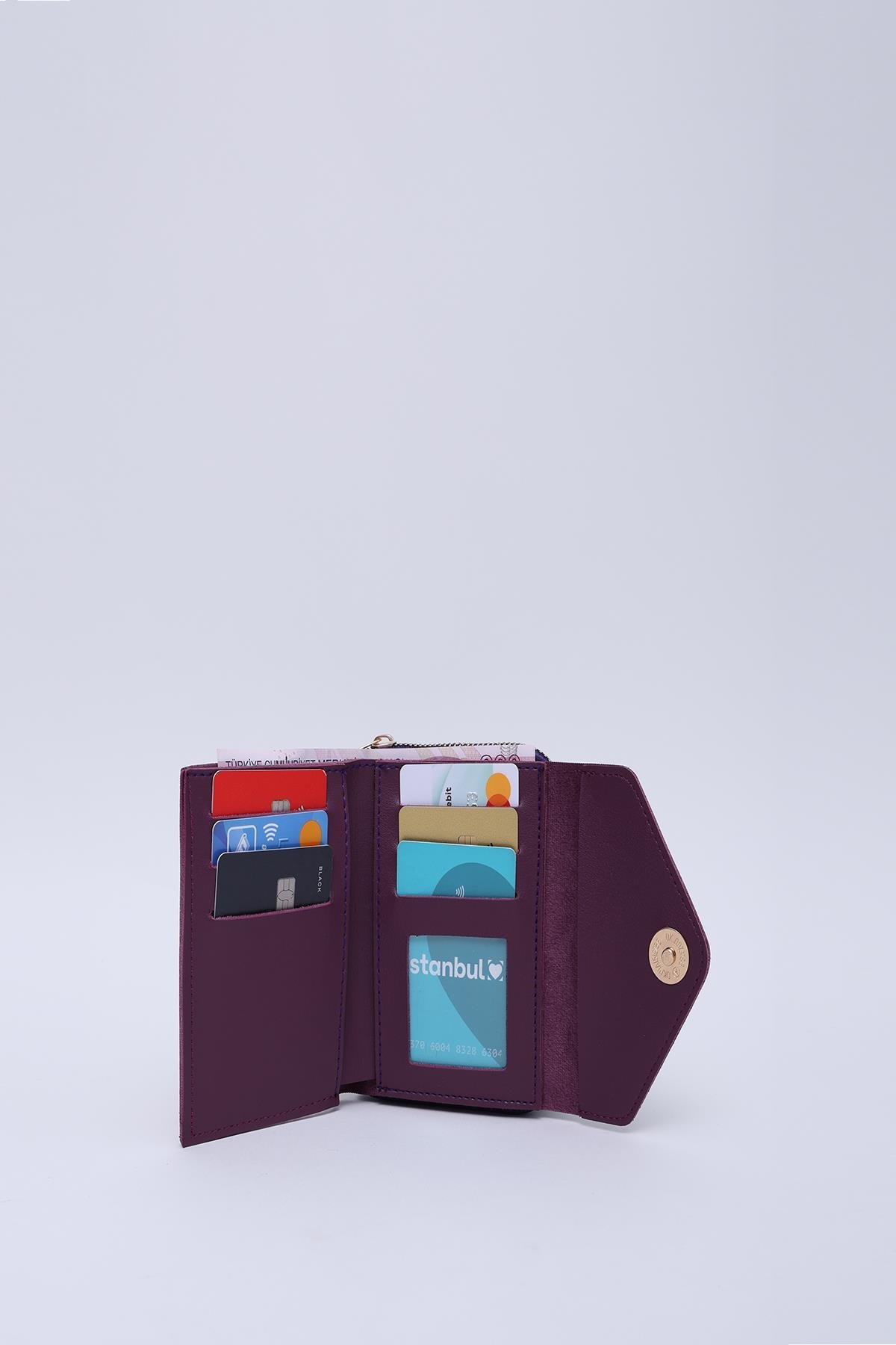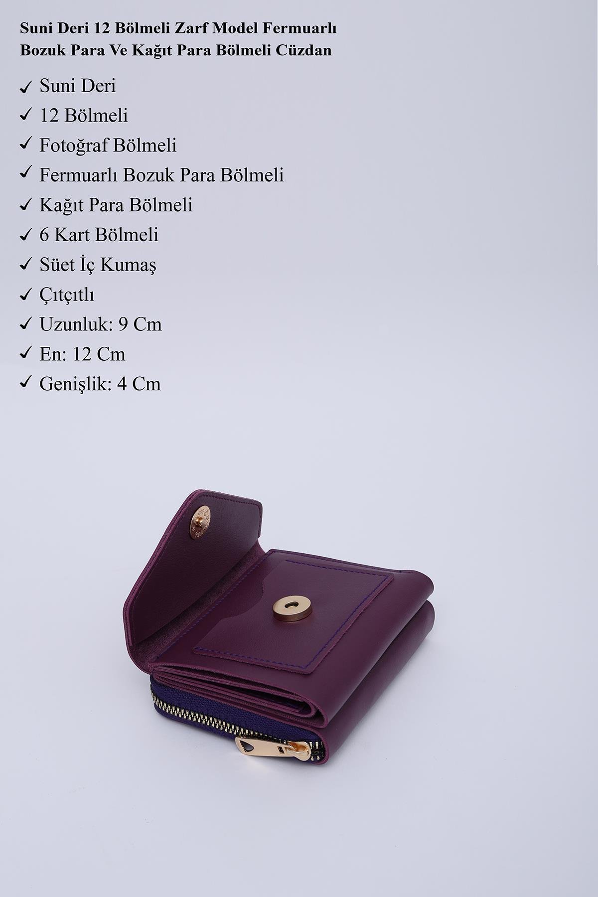 Mor Suni Deri 12 Bölmeli Zarf Model Fermuarlı Bozuk Para Ve Kağıt Para Bölmeli Cüzdan