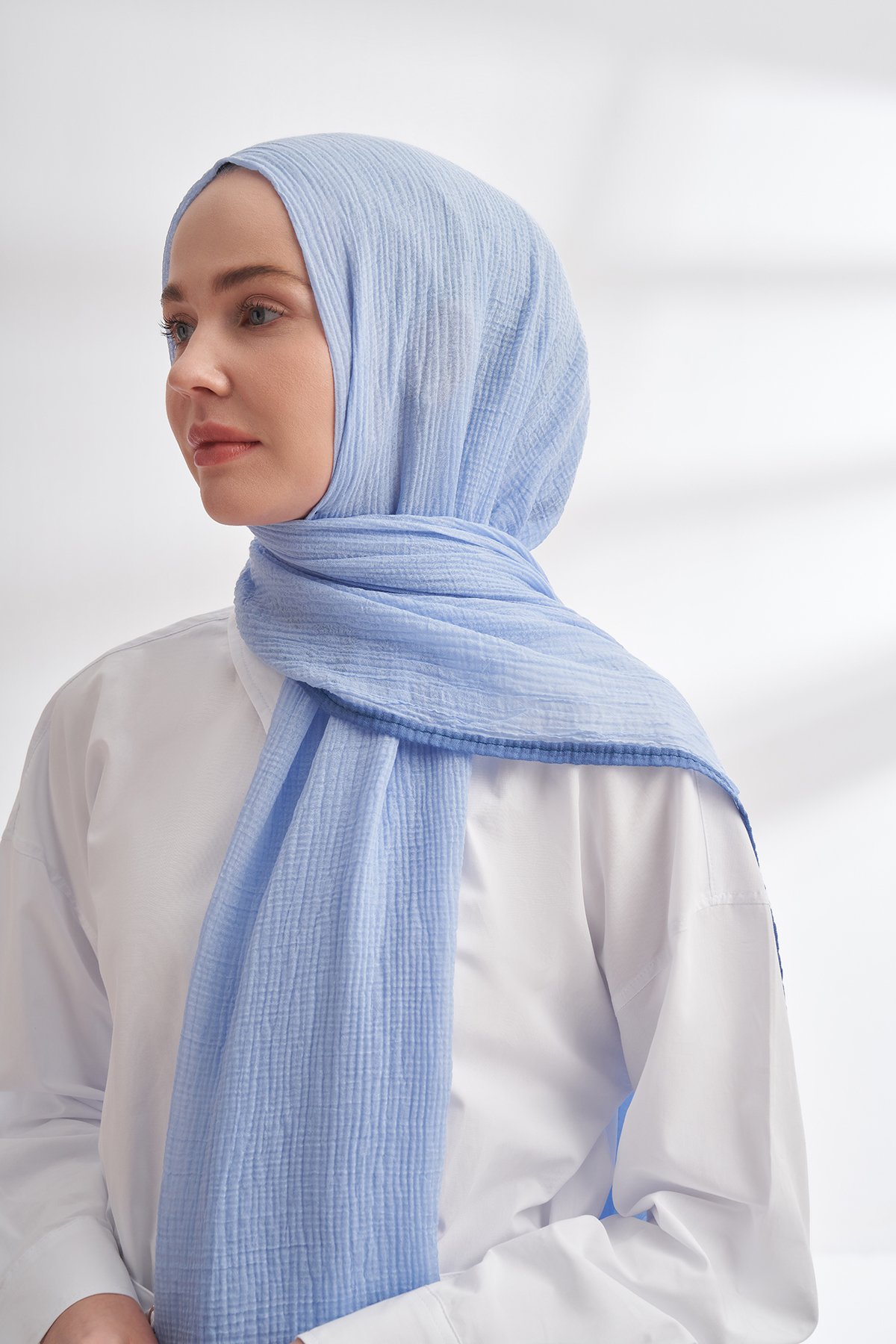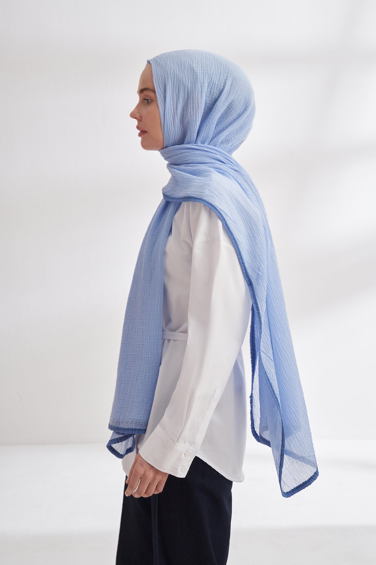 MÜSLİN BİYELİ ŞAL - BEBE MAVİSİ