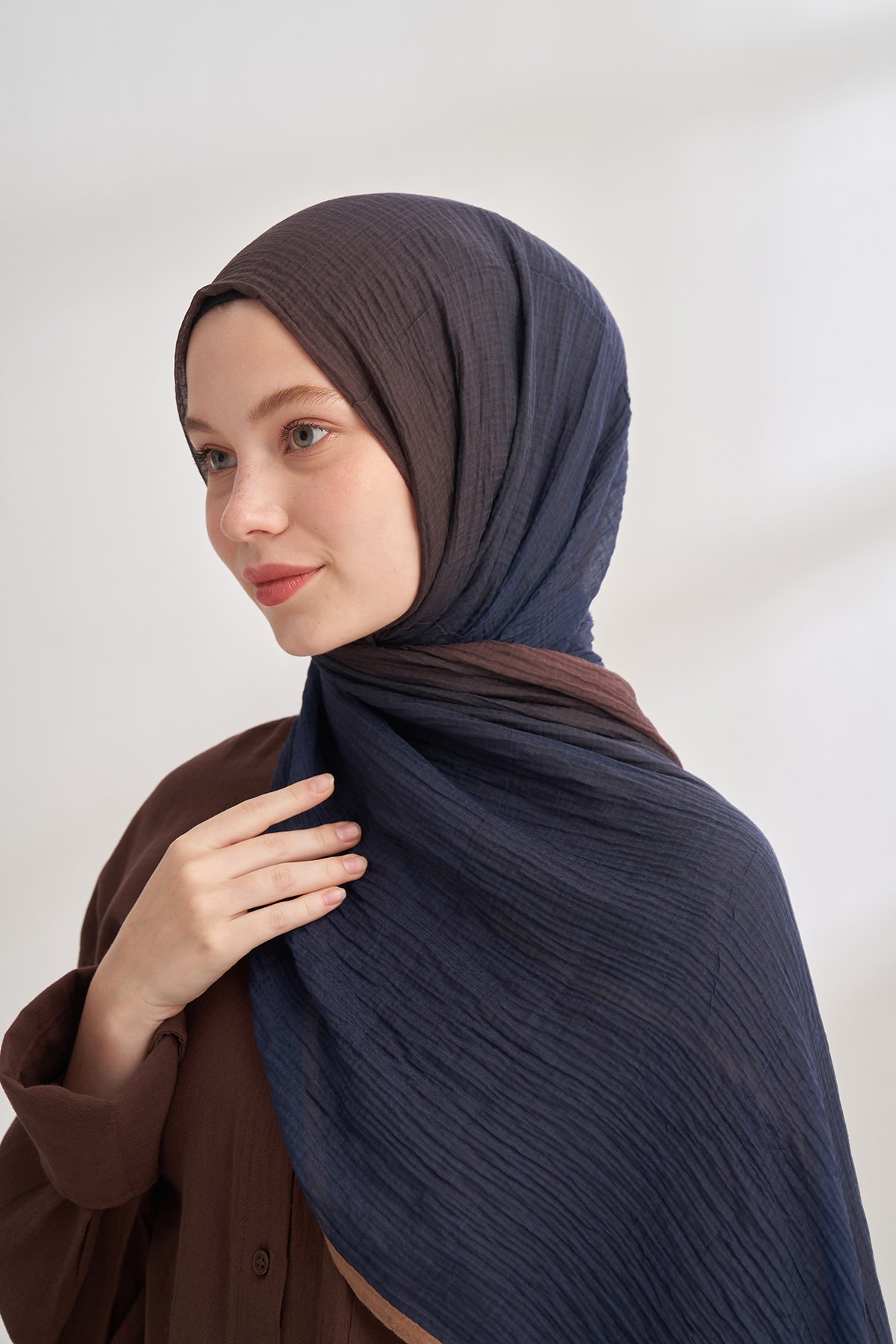 MÜSLİN DEGRADE BİYELİ ŞAL - LACİVERT - KAHVERENGİ