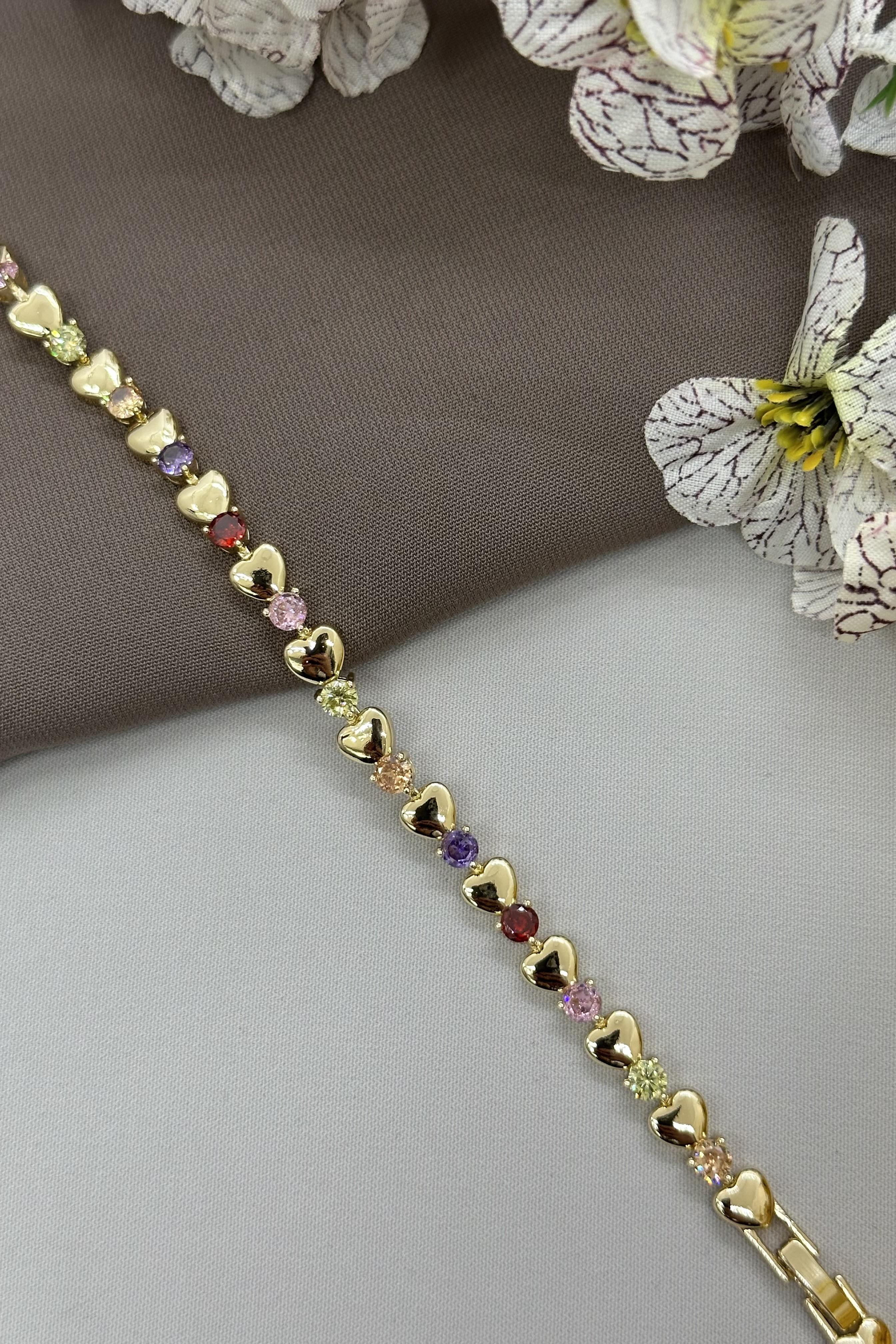 Renkli Taşlı Gold Vıp Bileklik