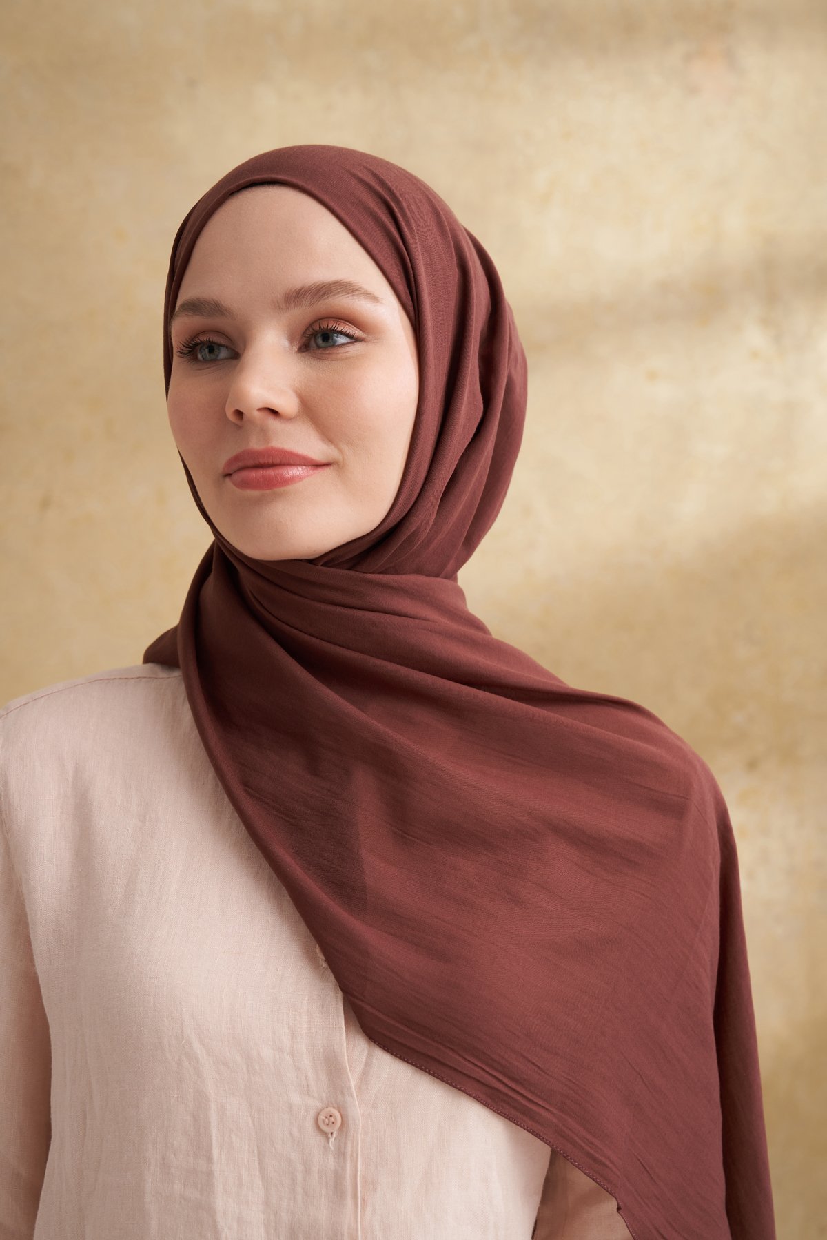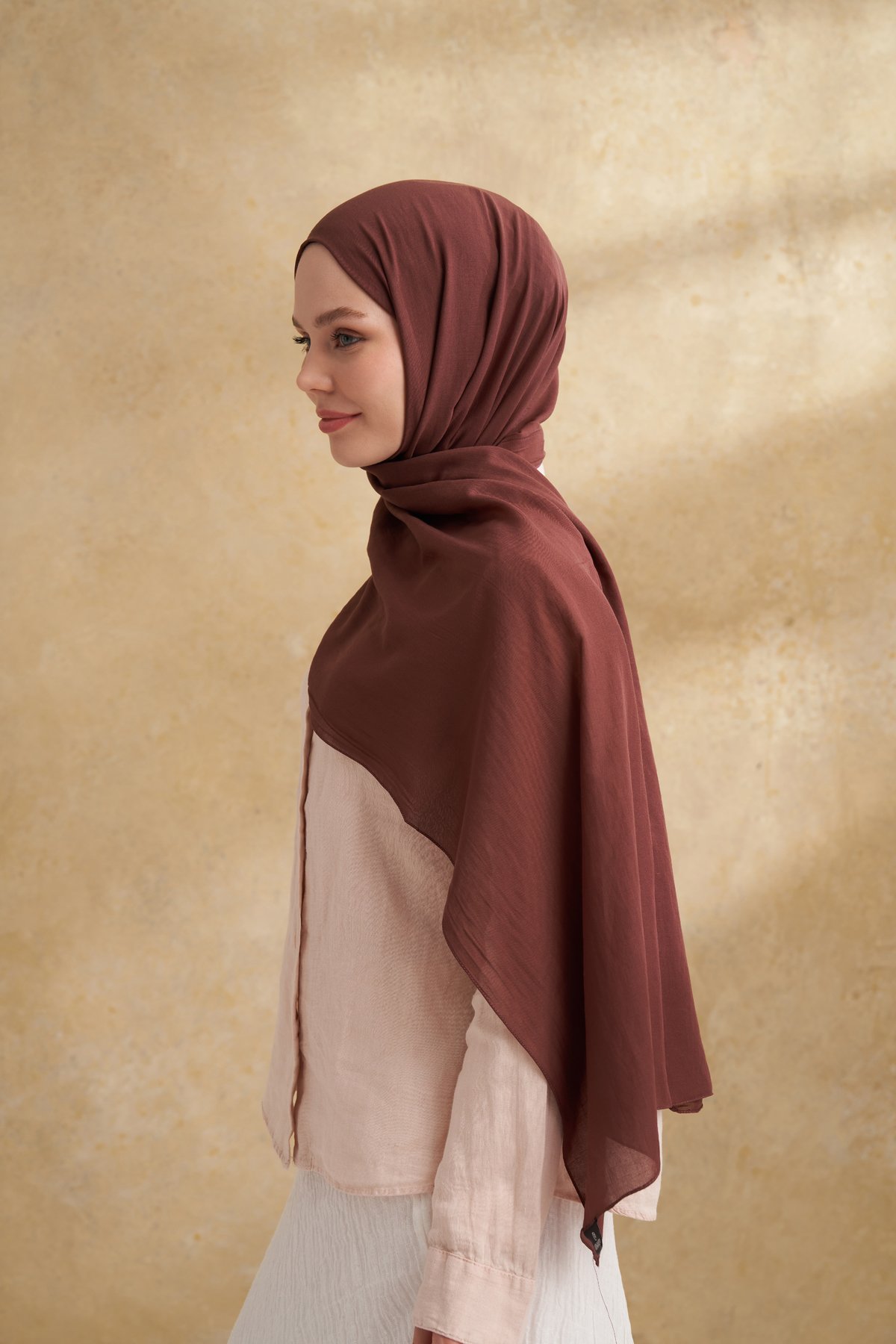 RUSTİK PAMUKSU ŞAL - KIZIL KAHVE
