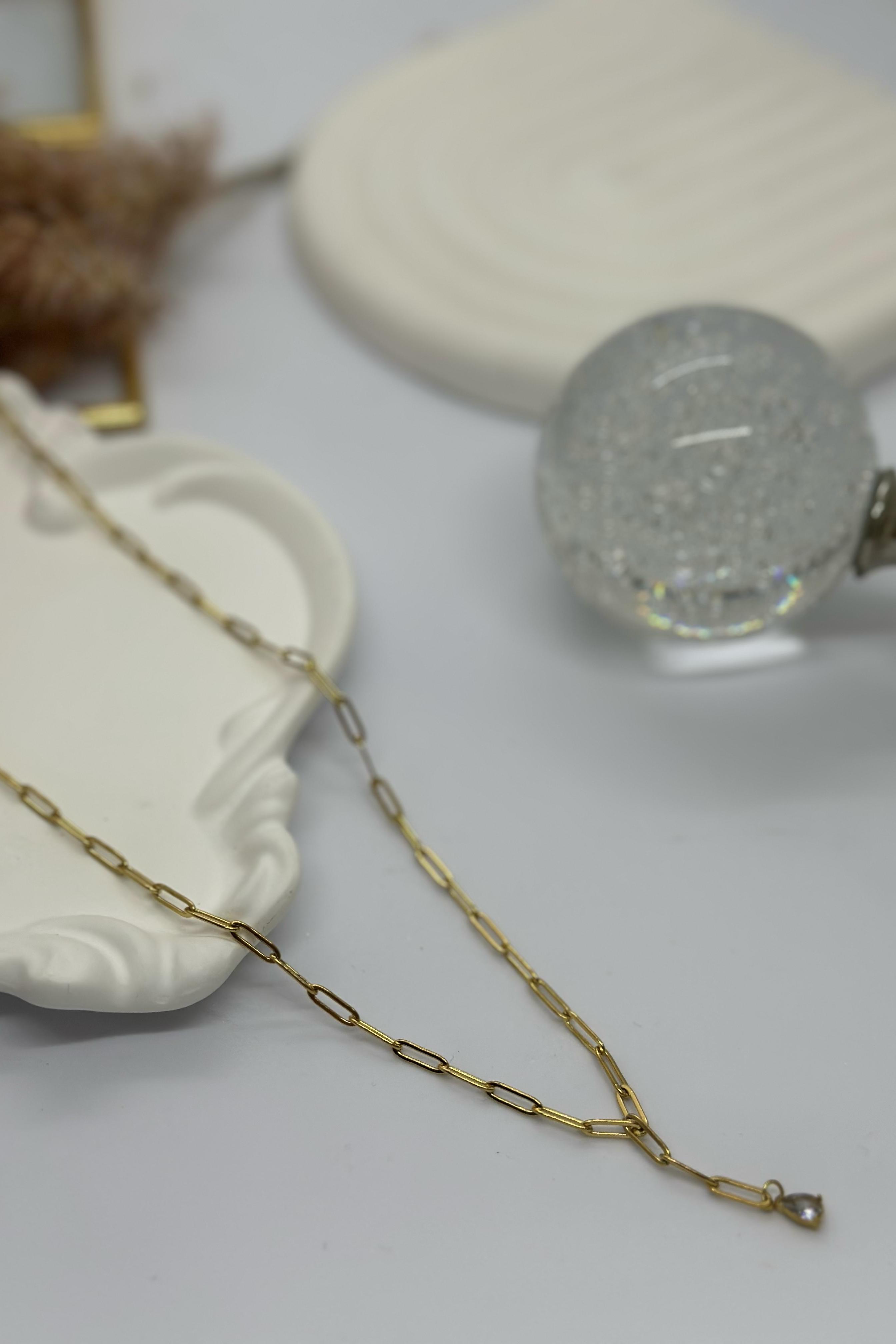 Taşlı Ataç Gold Çelik Kolye