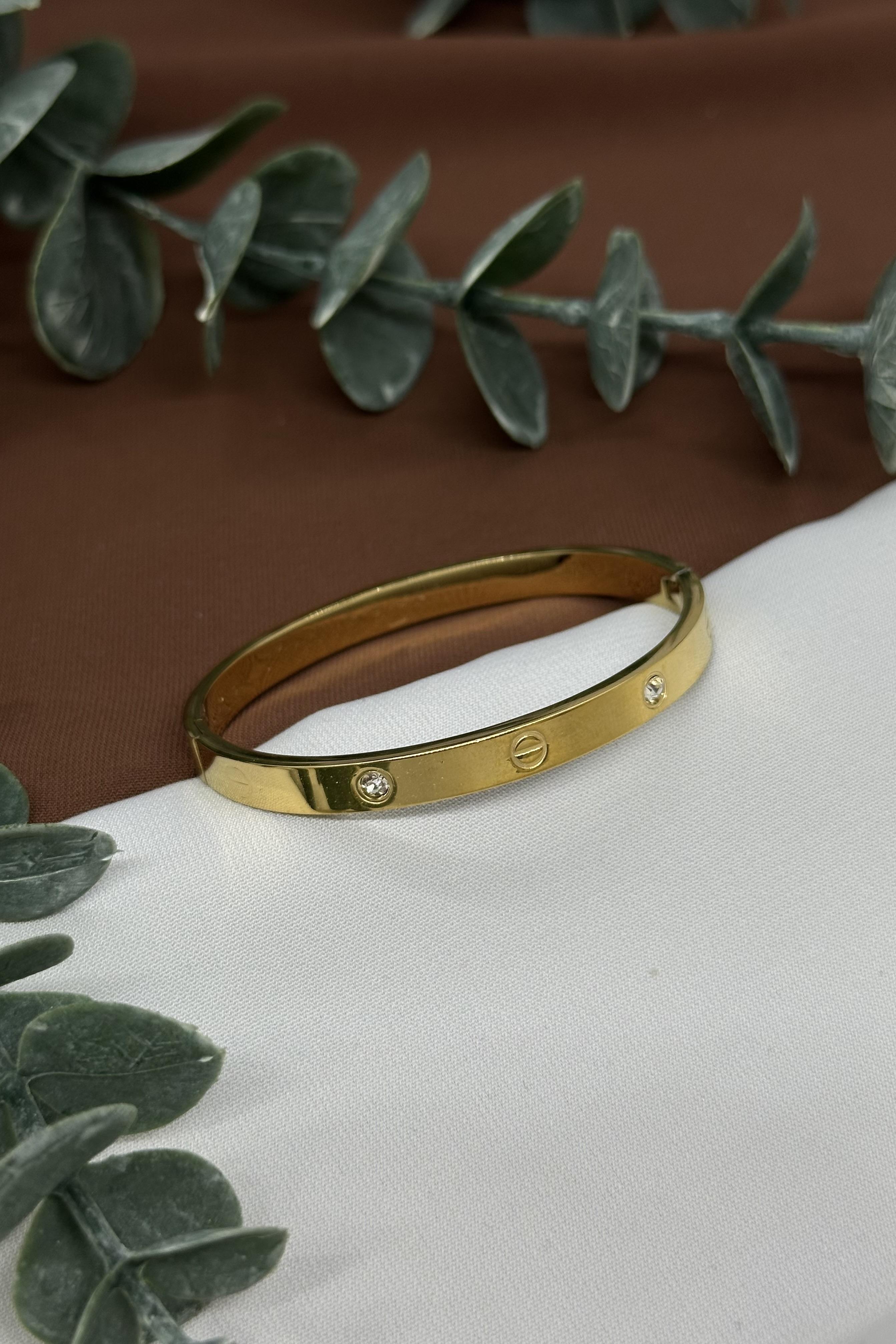 Taşlı Gold Crt Model Çelik Kelepçe Bileklik